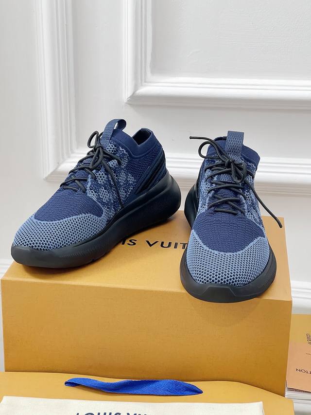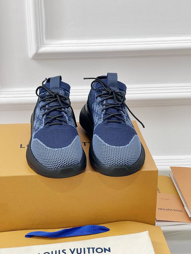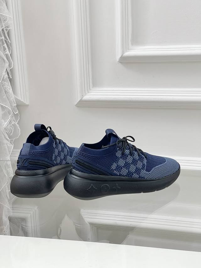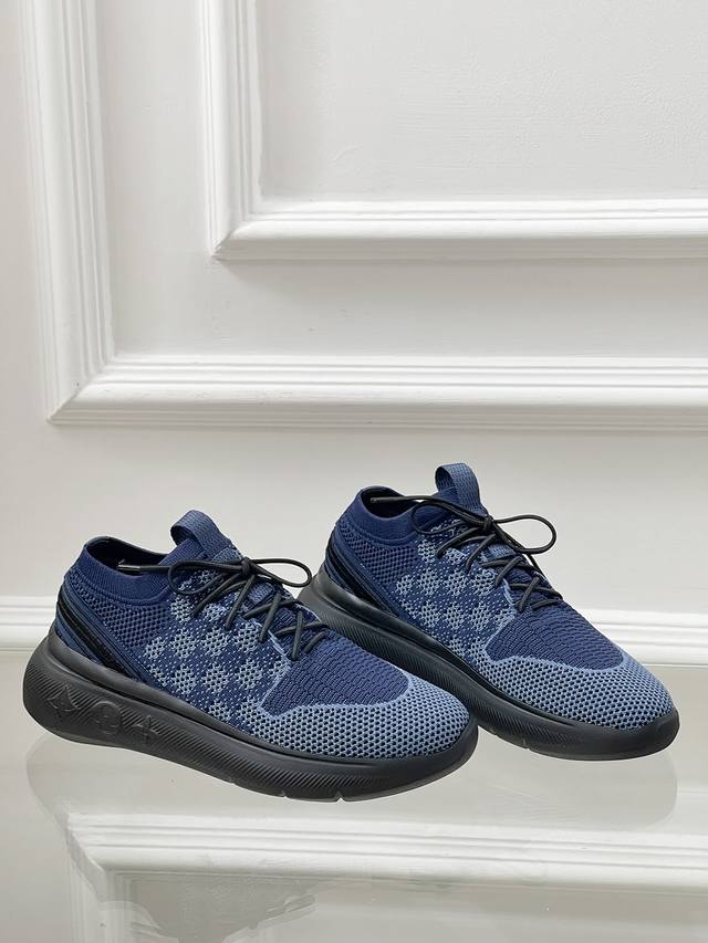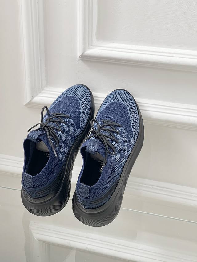 蓝色牛仔老花 时髦型男必备 商务休闲都适合 自重很轻 厚底显腿长