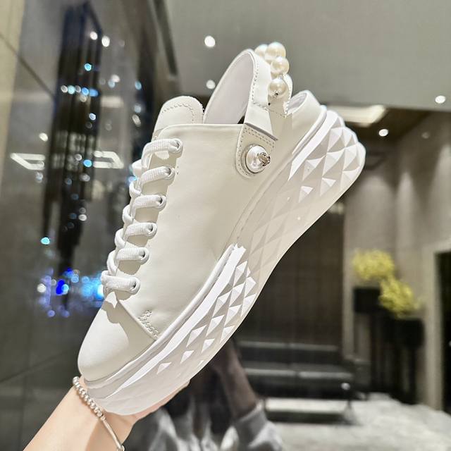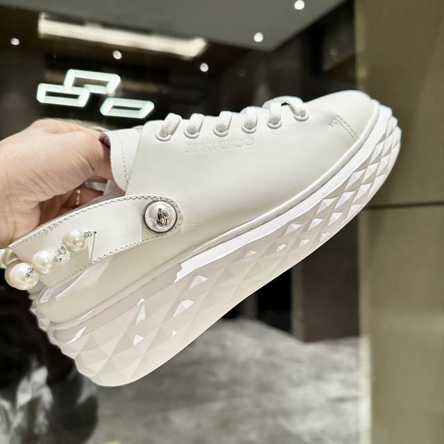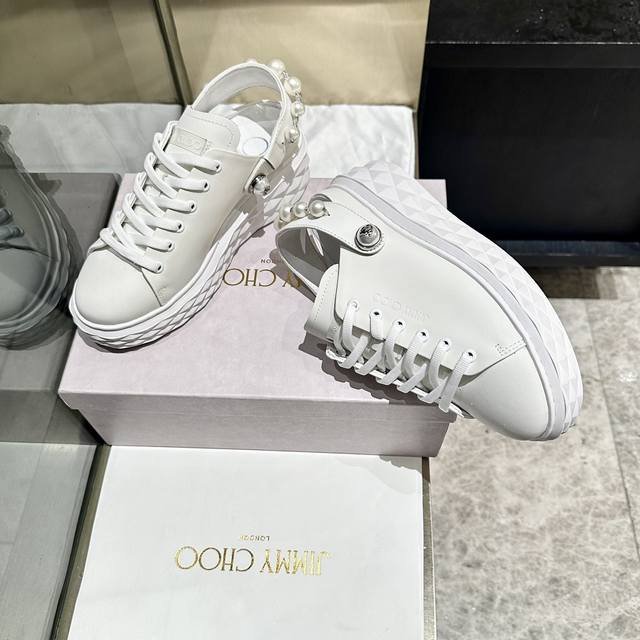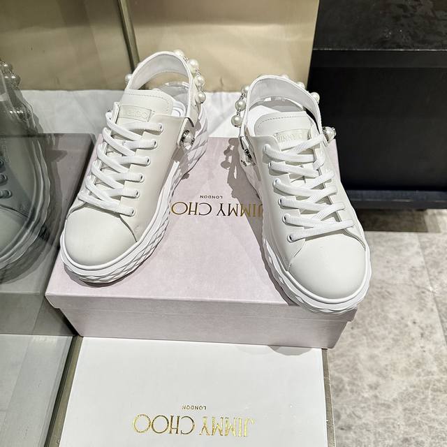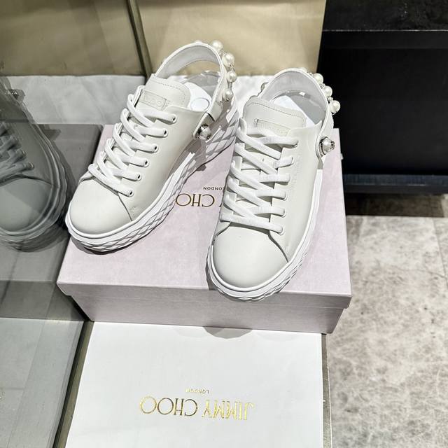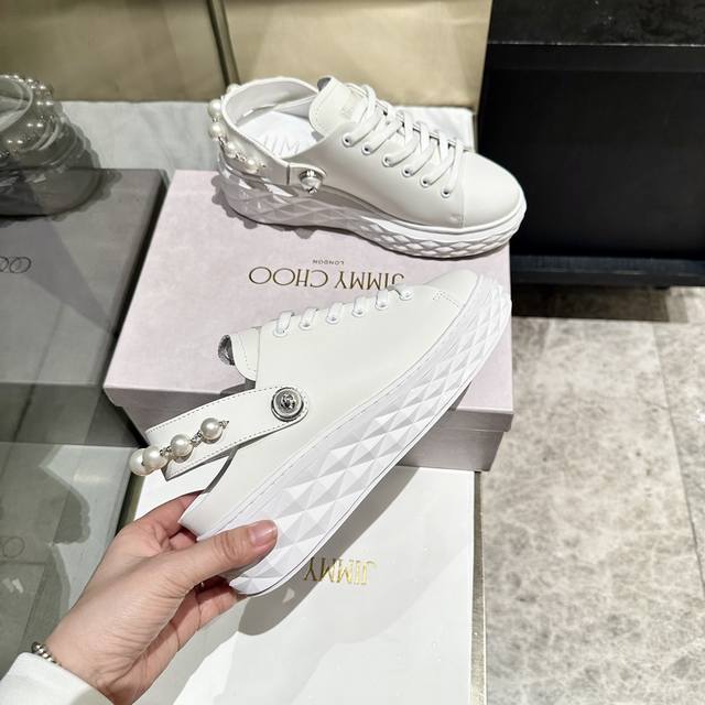 新款吉米周 Jimmy Choo ,独家发售,工厂P价P格 、原版大底休闲小白鞋,采用最新工艺设计,立体感强多种工艺融合一起,颠覆时尚,超级有型!水钻搭配超美。纯手珍珠链条,原版一比一百搭又潮流,可盐可甜!2种穿法!Size:35-40
