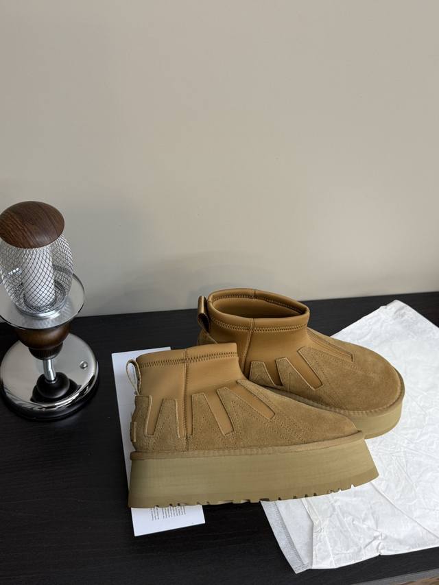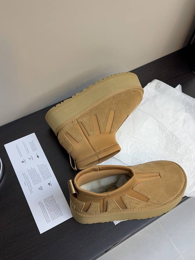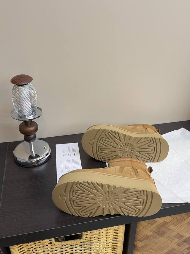 新款太阳花迪普鞋! Ugg Mini Dipper 迪普女子秋冬栗色经典短筒厚底增高雪地靴 颜色:栗色、芥菜籽 尺码:35-40