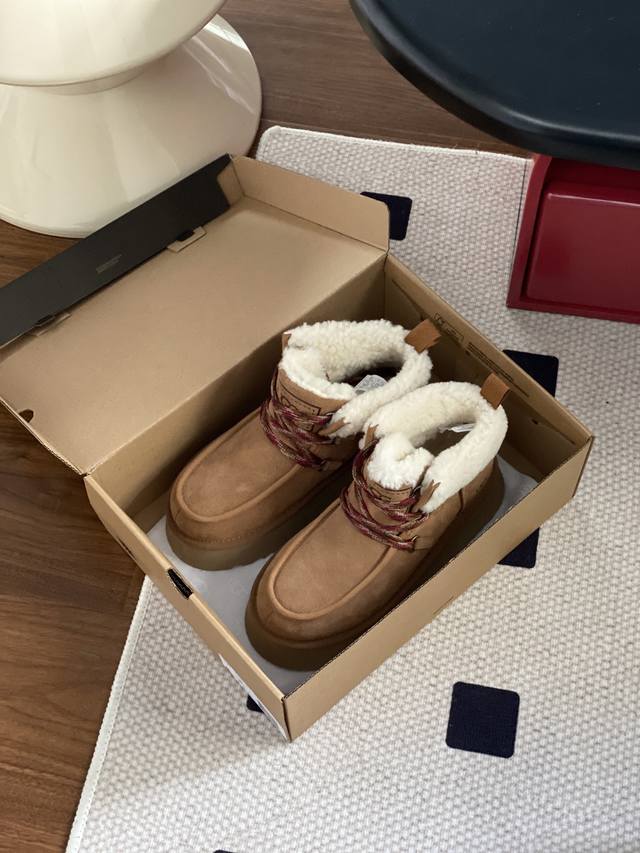 新款夫卡拉系带款,美拉德风! 延续了方克特靴的舒适百搭,鞋口毛茸茸设计 温暖又时尚翻毛皮鞋面,10Mm波纹羊皮里衬厚底拉长腿部线条 三色选 黑色。栗色。焦木色