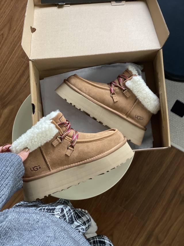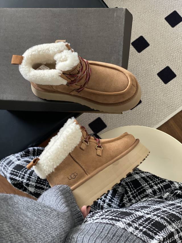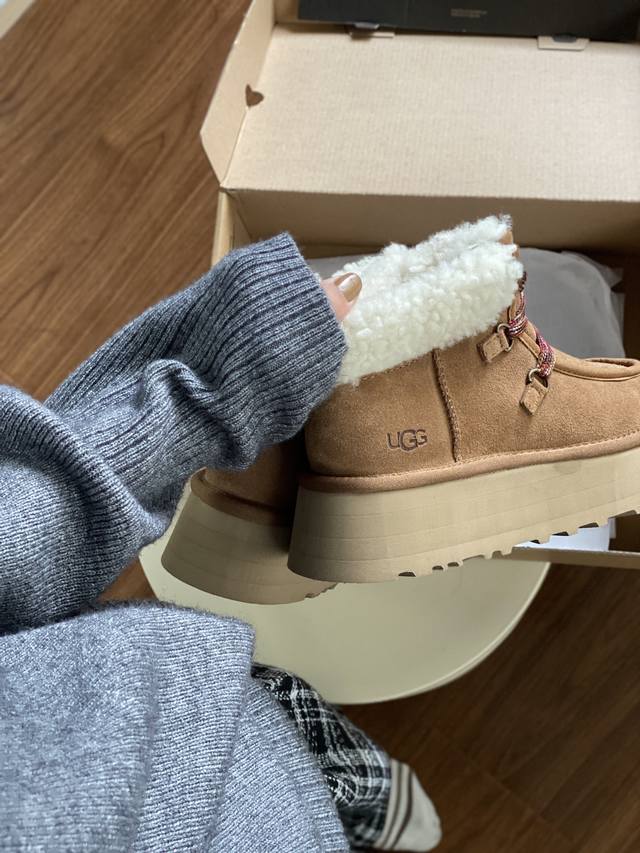 UGG最新秋冬mini坡跟新款厚底羊毛靴 材质采用进口皮毛一体 原版防滑橡胶大底!上脚舒适保暖 .款式时髦百搭潮人冬季必备款...