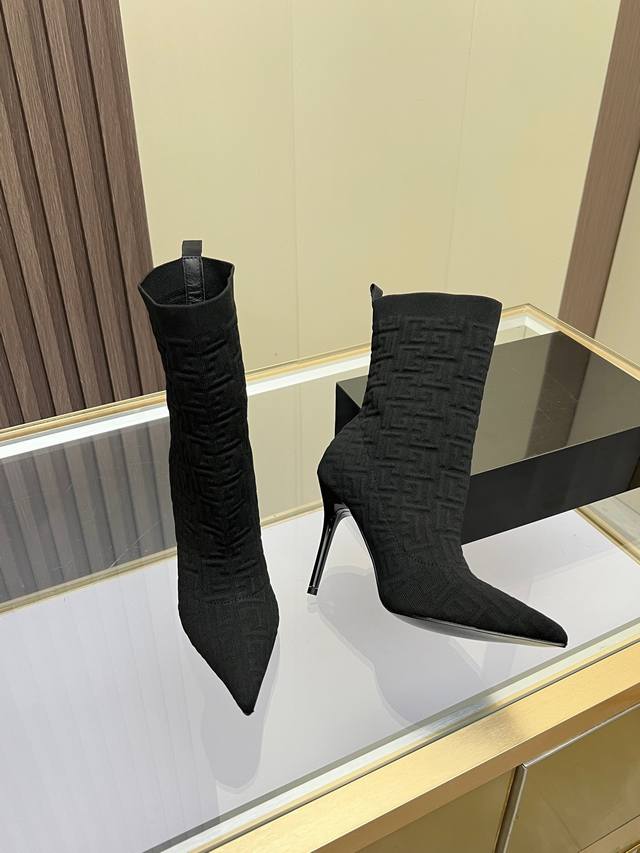 新款巴尔曼Balmain春秋冬季高跟靴子 DDD 材料:面料高弹力飞织布,内里羊皮,橡胶磨砂大底 DDD 跟高:10.5Cm DDD Size:标准35-41码,可定做42码 DDD