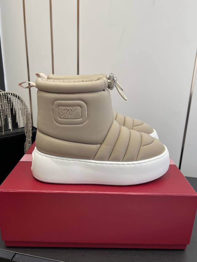 新款 雪地靴 蓬松织物短靴 厚底泡芙靴. DDD 鞋面以衍缝夹棉织物制成,柔软舒适,轻便的Eva材质鞋底宛如瑜伽垫,尽显挺拔身姿又保暖,配有带闪钻饰扣的抽绳,绵