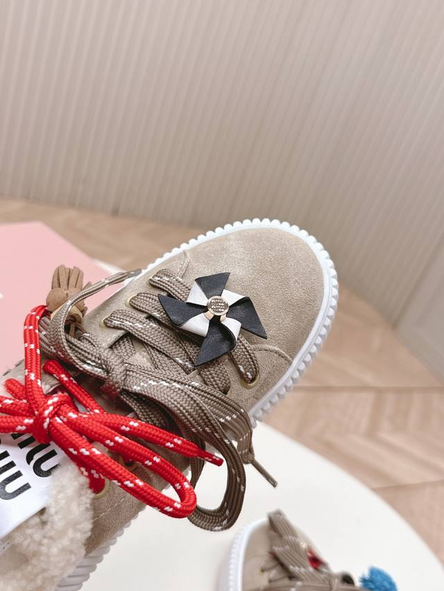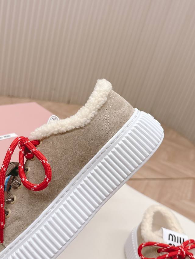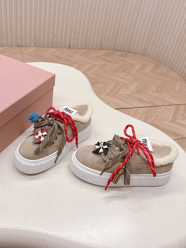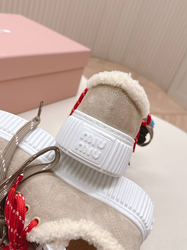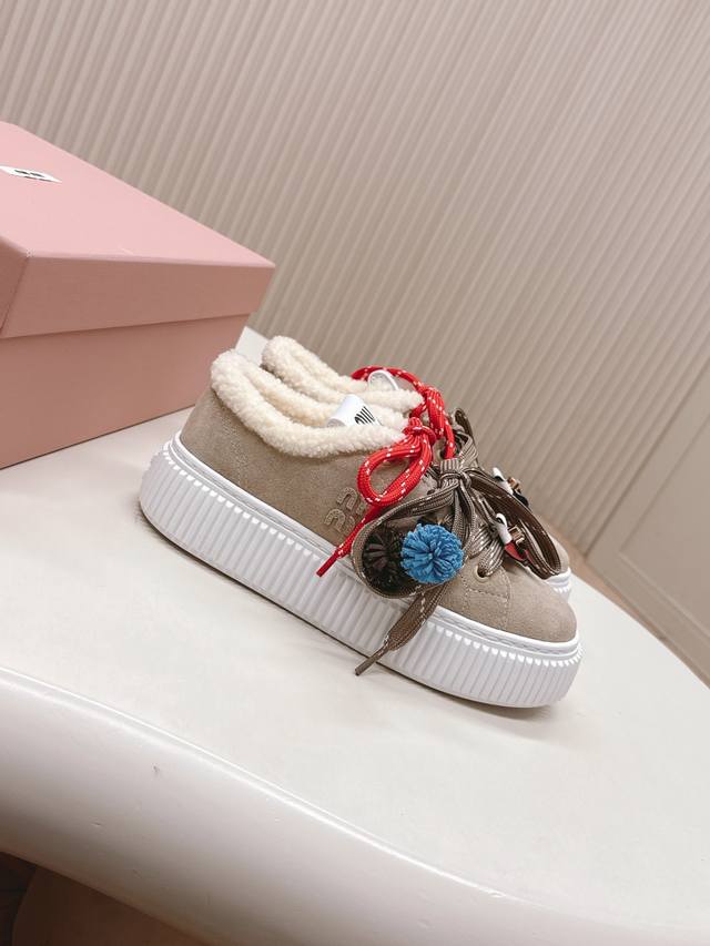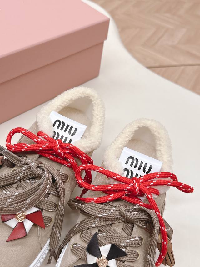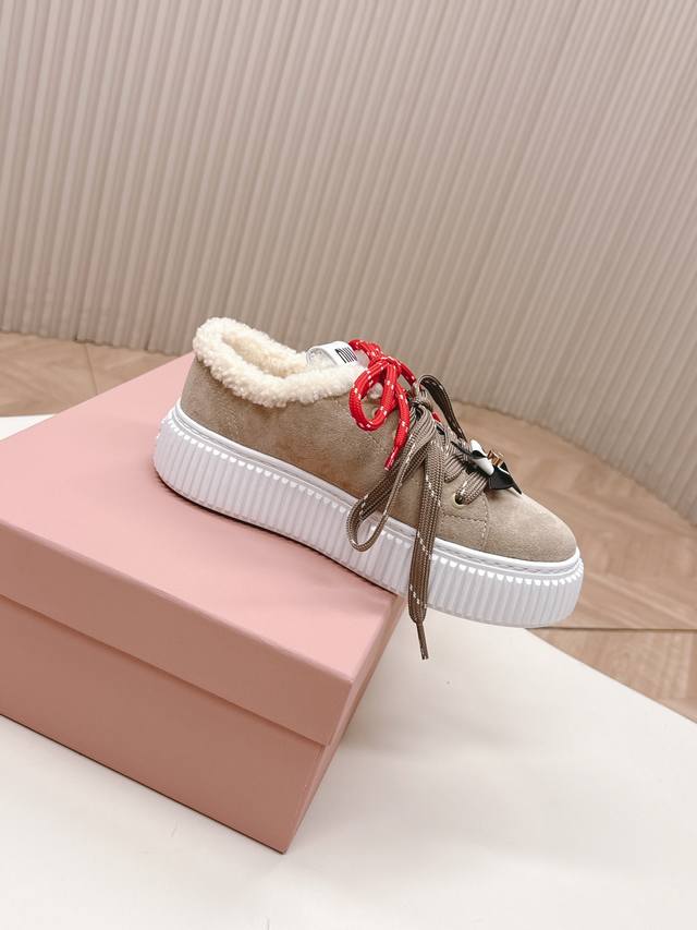 新色!顶级版本 飞机盒套装 皮里 毛里 Miumiu| 缪缪2025新品3D刺绣厚底休闲鞋 顶级原版面料质感满满,搭配经典3D立体字母刺绣,刺绣Logog立体饱