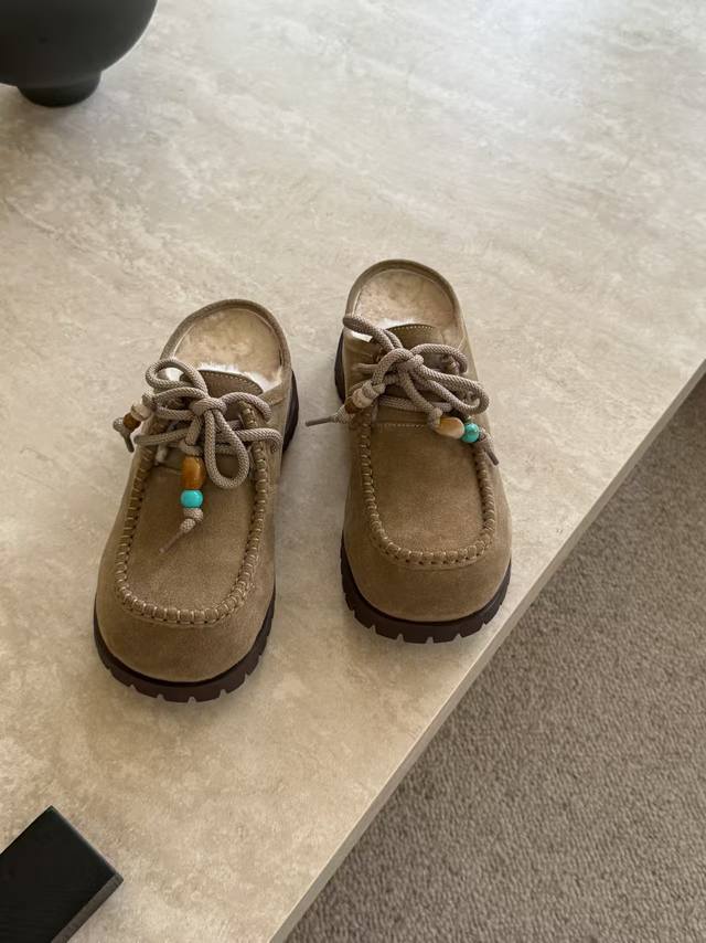 / 时髦秋冬新款土豆羊毛拖鞋,复古的亚克力配饰 巨显可爱和时髦,拉长腿一绝,5公分的内**,舒适的橡胶大底,出奇的暖和真的是让我无法自拔真太可爱了~ 毛茸茸的羊毛是