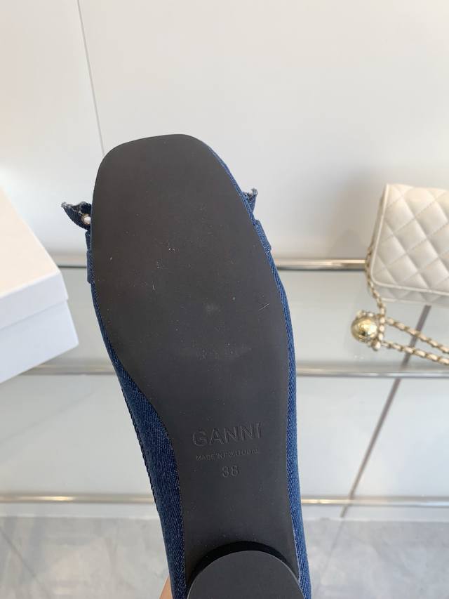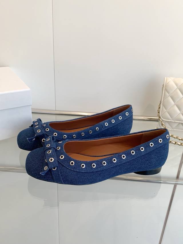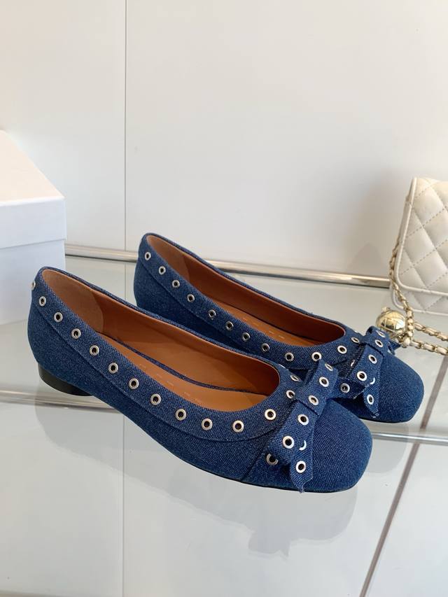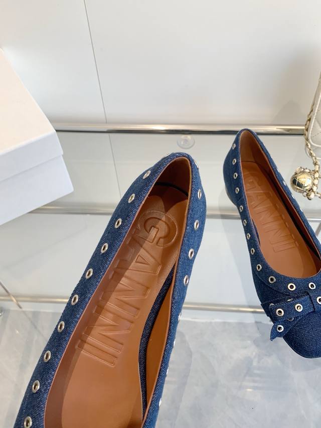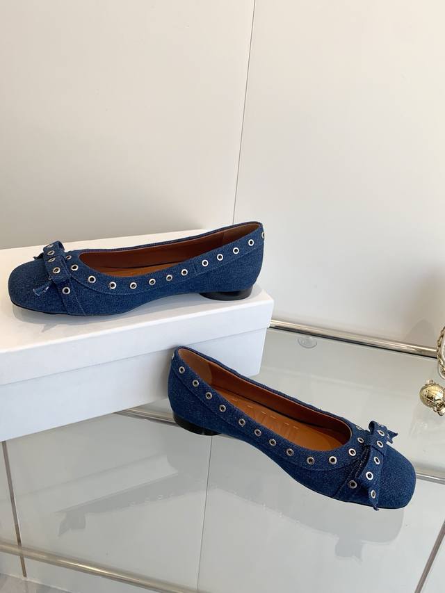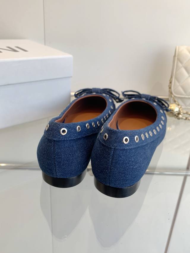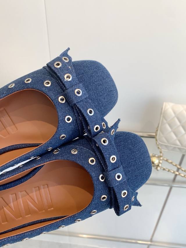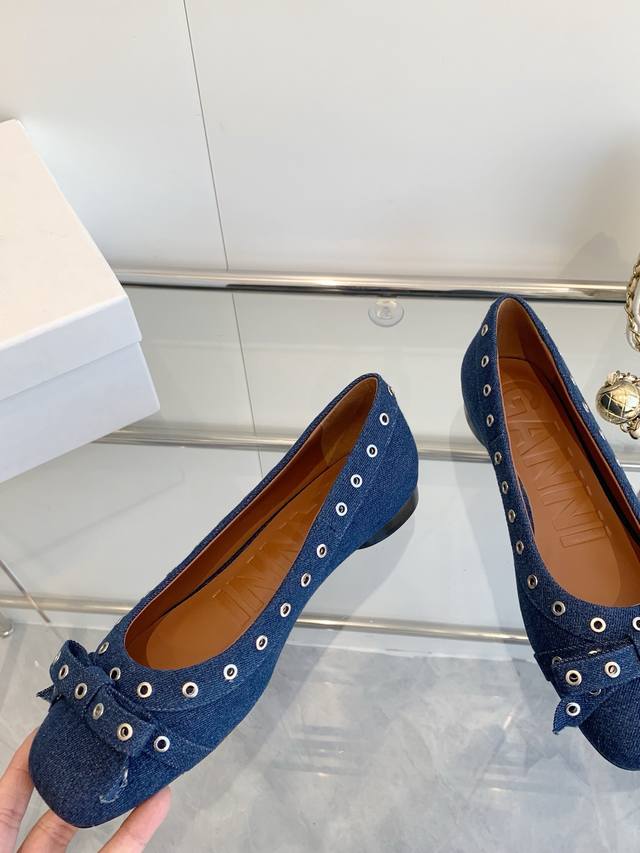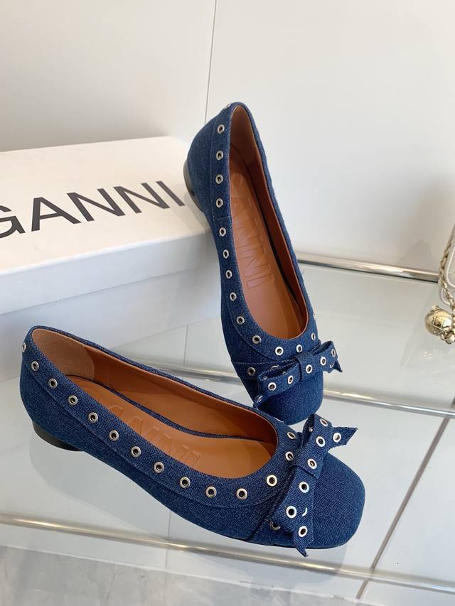 / 明星同款 Ganni 25Ss早春新款 圆头皮革鸡眼扣芭蕾单鞋 鞋面:进口牛皮 内里:订制水染小牛皮 大底:原版开模橡胶鞋底 码数:35-39 40 41定做不