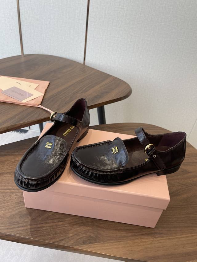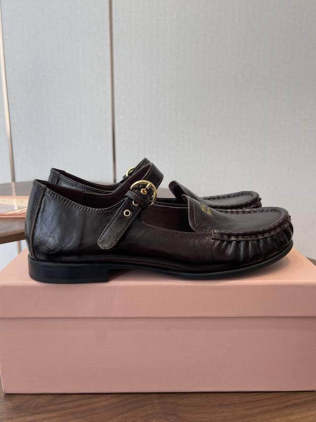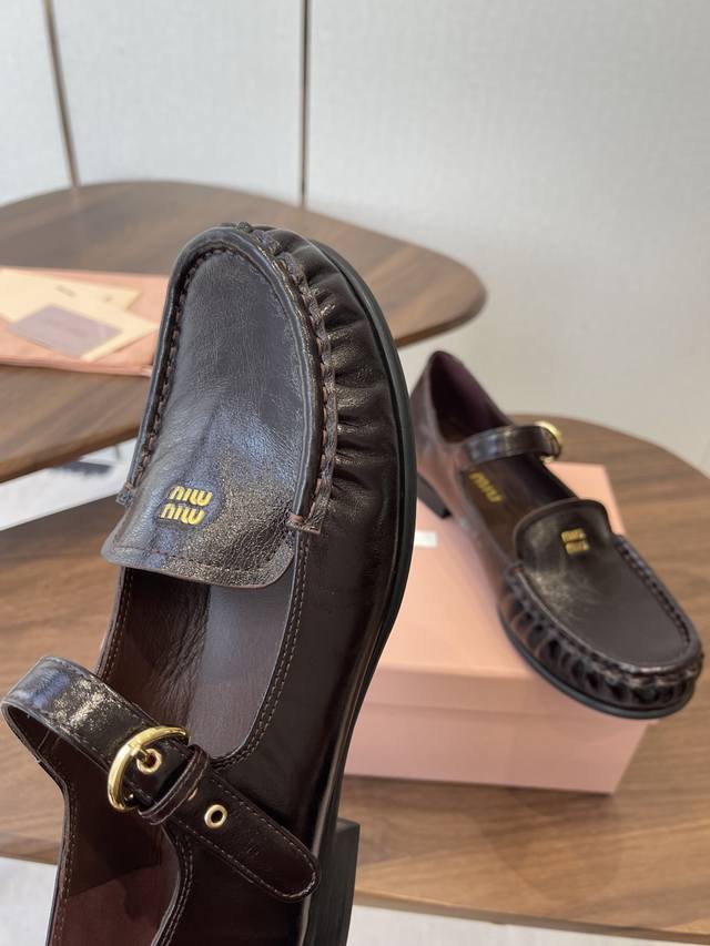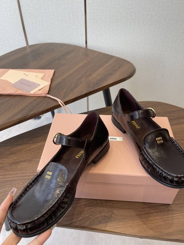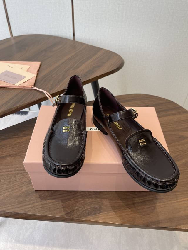 春夏26Ssmiumiu 缪缪 复古玛丽珍鞋! DDD 当少女感碰撞复古肌理,这双鞋就是秋冬日衣橱的氛围开关,甜酷女孩的日常百搭牌。鞋头烫金“Miu Miu”标识+一字扣带,复古玛丽珍的经典轮廓里,藏着品牌独有的娇俏少女感;鞋边手工褶皱缝线,把松弛感揉进每一步。 DDD 鞋面:进口羊皮 内里:羊皮 大底:橡胶大底 DDD Size:35-40 40定做不退换 DDD
