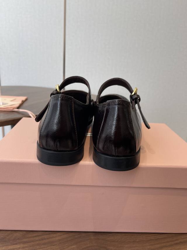 / 春夏26Ssmiumiu 缪缪 复古玛丽珍鞋! 当少女感碰撞复古肌理,这双鞋就是秋冬日衣橱的氛围开关,甜酷女孩的日常百搭牌。鞋头烫金“Miu Miu”标识+一字
