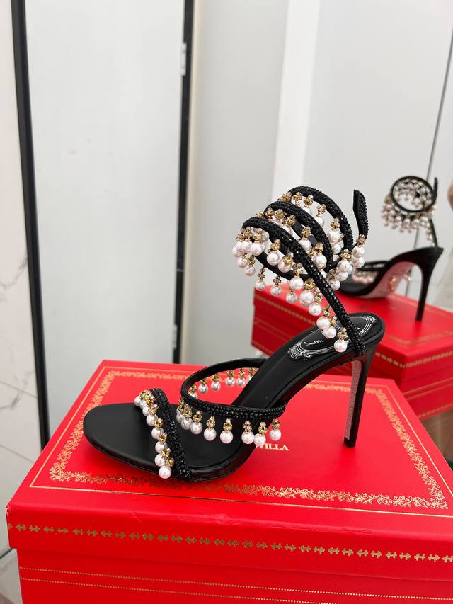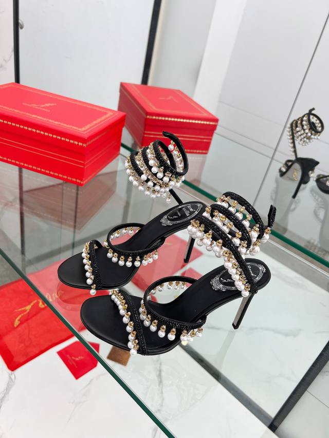最新Rene Caovilla芮妮 乔薇拉 Rc高版本 春夏爆红系列,魅惑华丽的顶级硬货,Cleo水晶珍珠灯饰造型凉鞋,年度重量级镇店精品!水晶珍珠绑带高跟鞋 DDD 全球断货的绕环钻带手工缝制珍珠吊坠凉鞋!明星同款,平台主播、网红博主倾情演绎,时尚优雅气质。上千颗水钻珍珠整齐排列在一起,环绕在脚踝,尽显性感妖娆女人味。专柜原版拆版开模定制,非常重工,引进国外进口机器+全精致手工苛刻打造立体拱面钻带呈现完美品质。务求拥有的姑娘,都能保有最美的浪漫回忆,仙气逼人~经典高贵优雅 DDD 面料:原版定制级真丝+