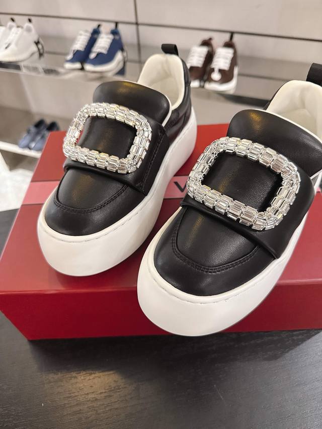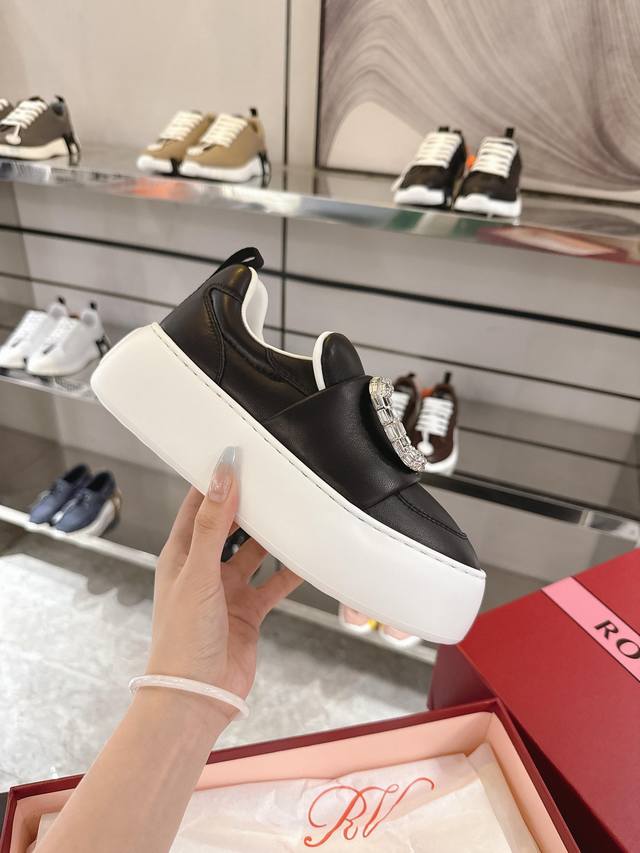 本款简便运动休闲鞋汲取 年代的太空元素,鞋型简约。鞋面以衍缝绵羊纳帕皮革制成,触感柔软,Eva外底脚感轻便,宛如踩在瑜伽垫上,五厘米的高度尽显挺拔身姿。鞋舌上点缀立体字母标识。轻松为维维亚精致造型增添休闲细节。 DDD 纳帕绵羊皮制成 DDD 鞋舌上点缀立体感Rv标识 DDD 皮革内底 DDD 皮革外底 DDD 鞋底厚5Cm DDD 尺码35-40 40码不退不换 DDD 出厂价pp格:380 DDD 适应季节:秋季 DDD 推荐搭配:休闲,运动,日常。 DDD