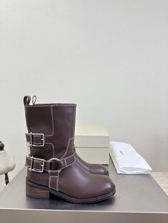 机车靴 Unfolio精品 短靴 小众设计师25发布会新款 棕色 面料选用 头层牛皮 内里舒适羊皮里 原版可回收材质收腰流线型橡胶大底 码数 35 36 37