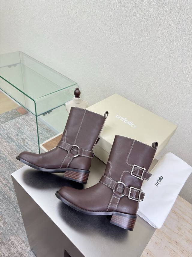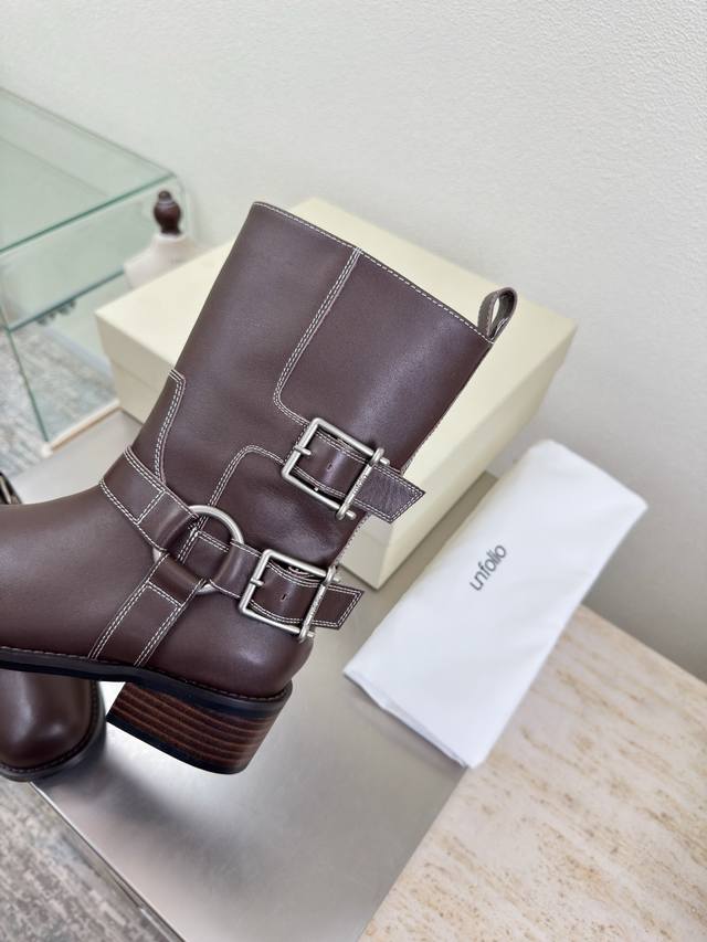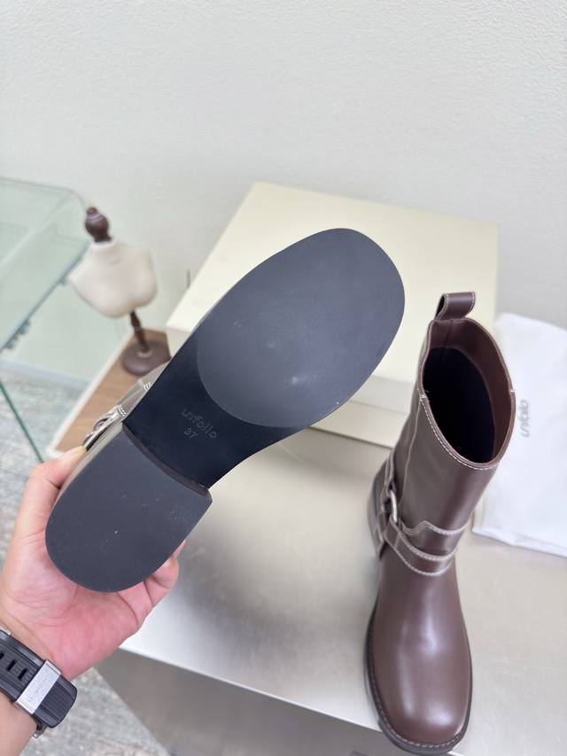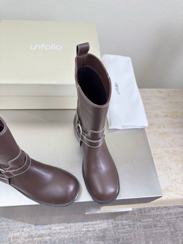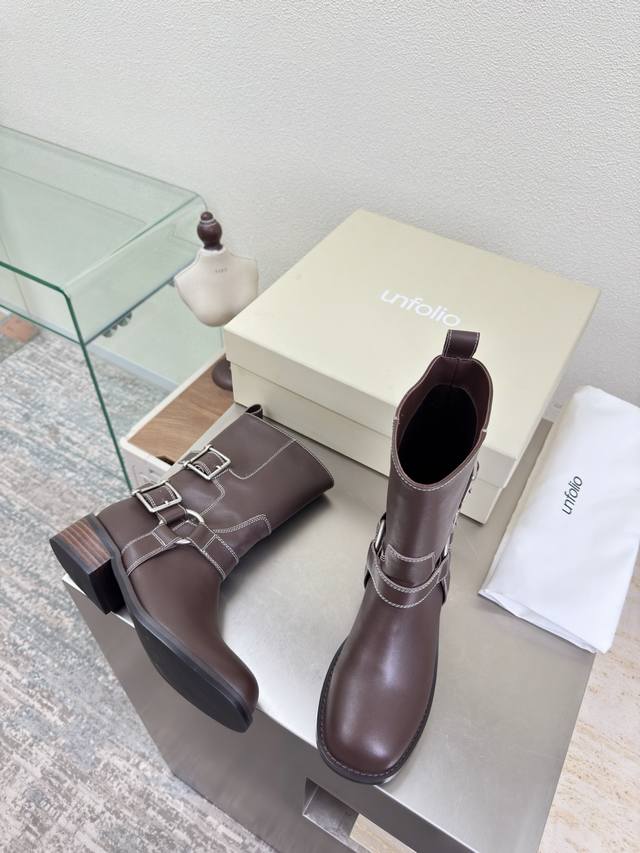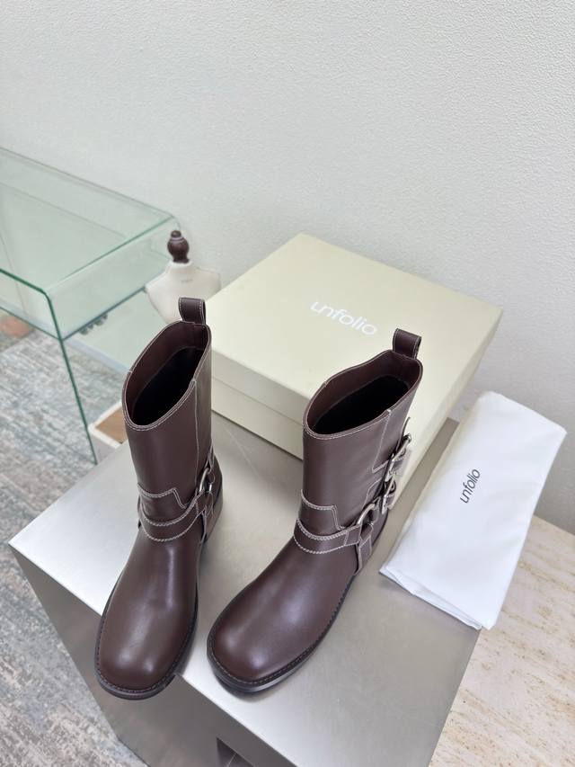 / 机车靴 Unfolio精品 短靴 小众设计师25发布会新款 棕色 面料选用 头层牛皮 内里舒适羊皮里 原版可回收材质收腰流线型橡胶大底 码数 35 36 37