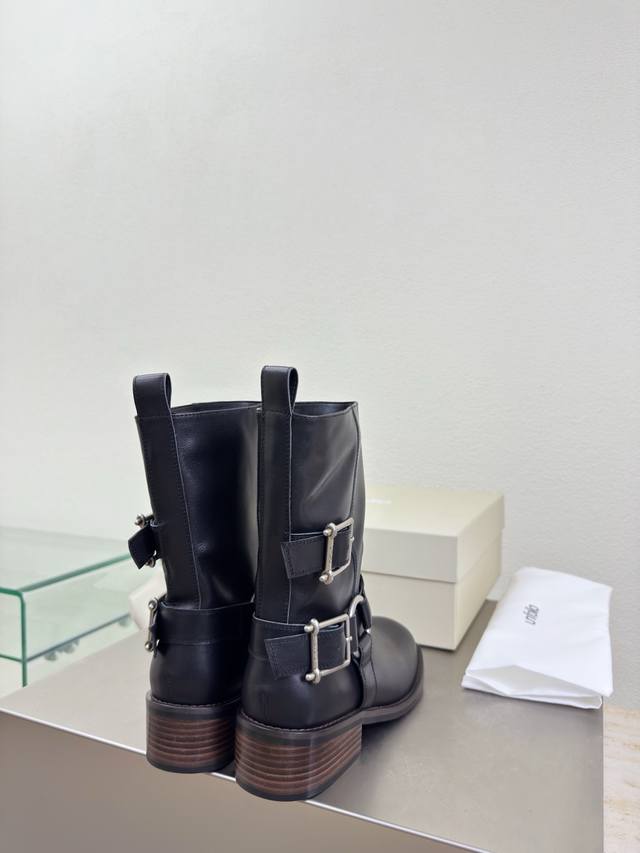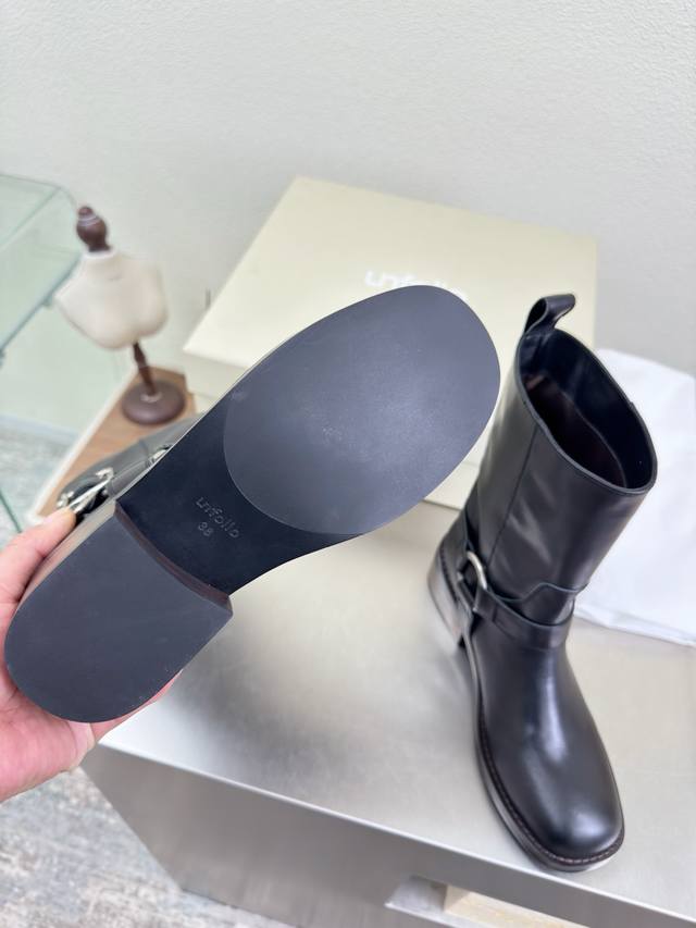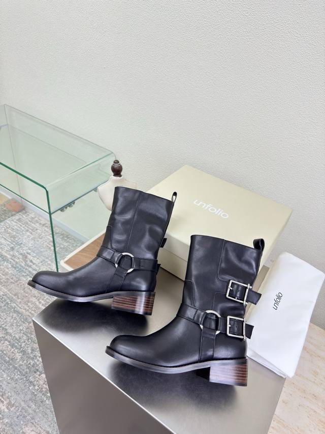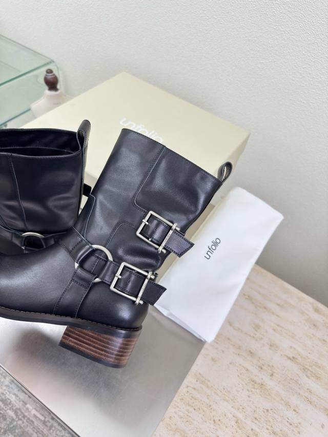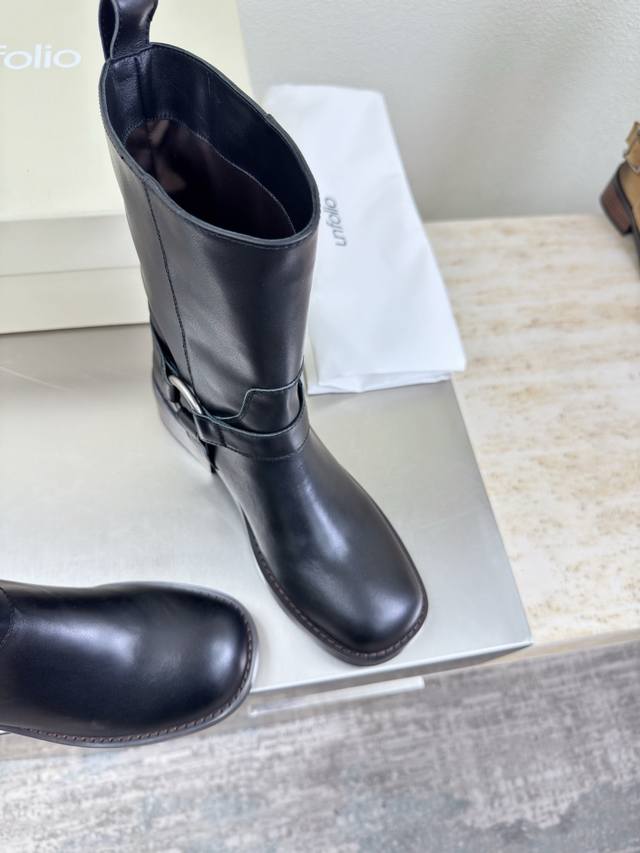 / 机车靴 Unfolio精品 短靴 小众设计师25发布会新款 黑色 面料选用 头层牛皮 内里舒适羊皮里 原版可回收材质收腰流线型橡胶大底 码数 35 36 37