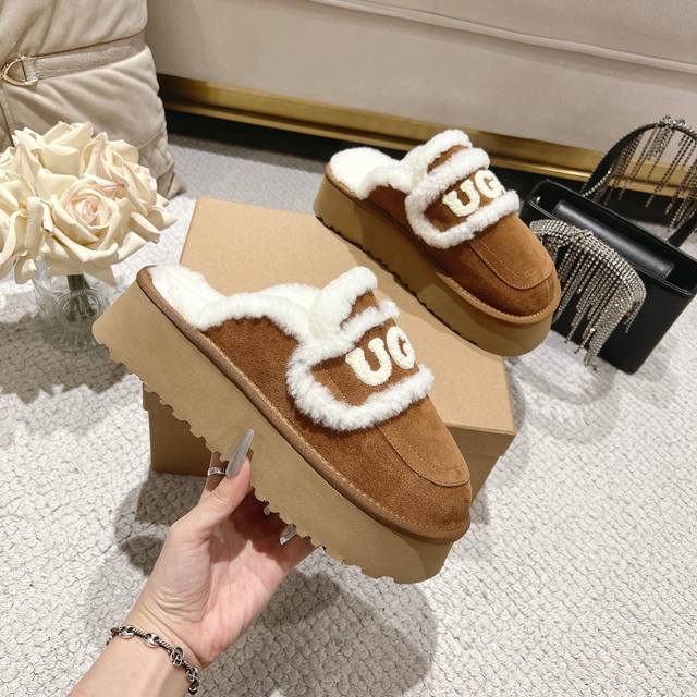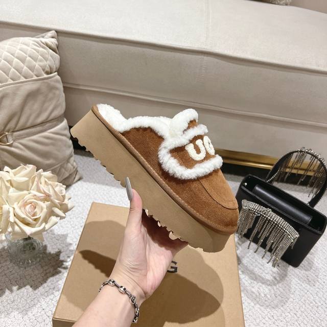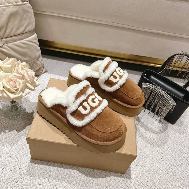 栗色 DDD 厚底 DDD Ugg Logo拖鞋太火啦 DDD 一眼就上头的款式 胖胖的方圆头鞋 加上羊毛边边Logo 憨憨的可爱。鞋身很轻巧 走路简直可以跳起来! DDD 四色:栗色 咖色 沙色 香槟棕色 DDD Size:35-40 DDD