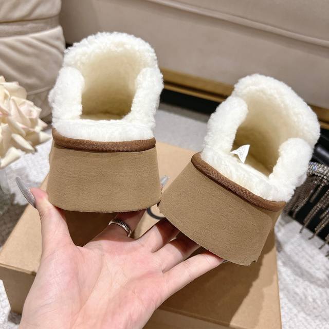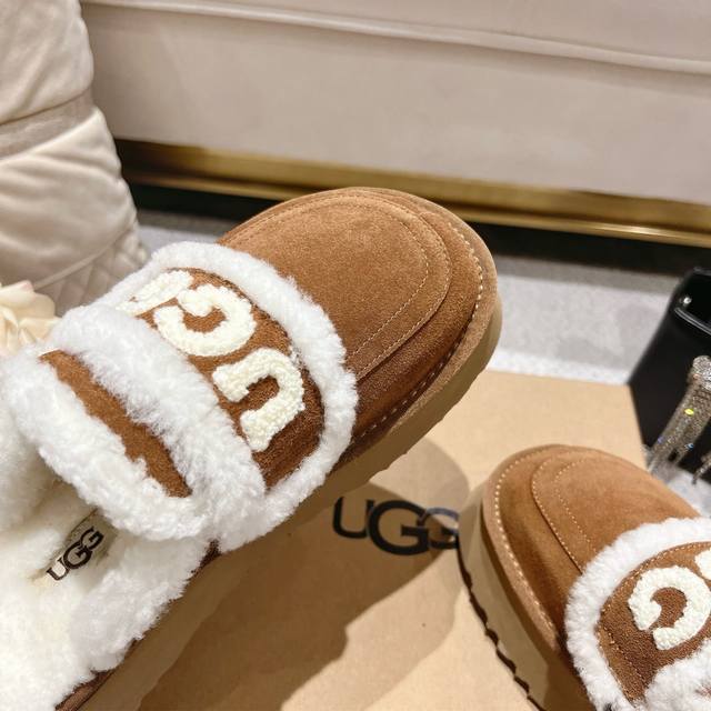 / 栗色 厚底 Ugg Logo拖鞋太火啦 一眼就上头的款式 胖胖的方圆头鞋 加上羊毛边边Logo 憨憨的可爱。鞋身很轻巧 走路简直可以跳起来! 四色:栗色 咖色