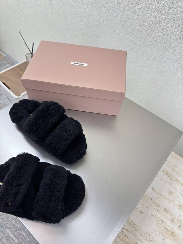 / 毛毛拖 澳洲 羊毛里拖着Miu'miu 25 毛毛 系列 对版舒适成型大底 系列 Miu'miu 经典舒适 制作 原版一致 成型大底 高版本 面料 澳洲羊毛 内