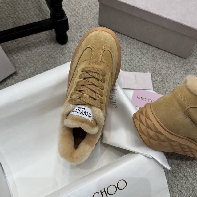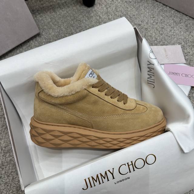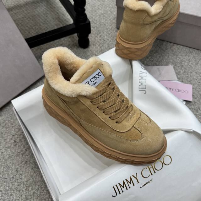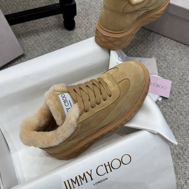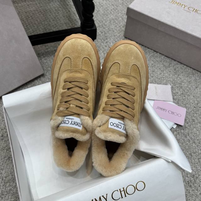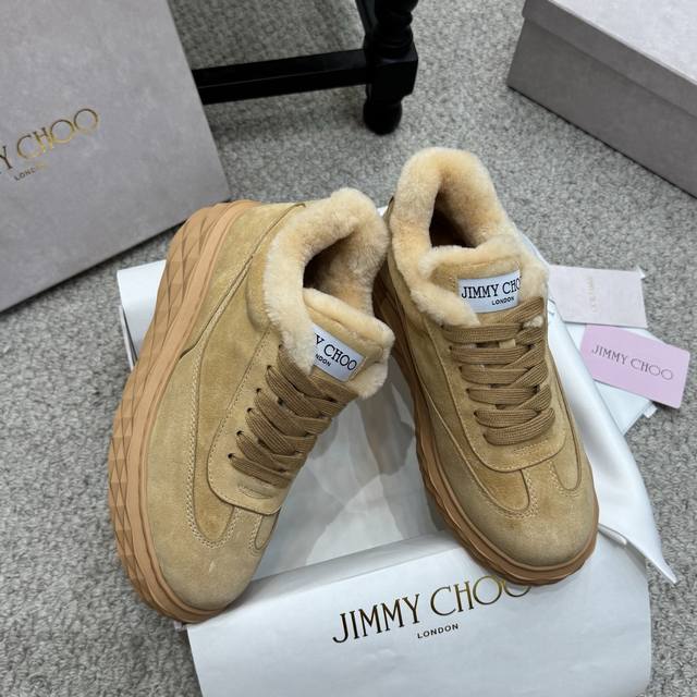 / 毛毛鞋 Jimmy Choo ,独家发售,原版大底休闲小白鞋,采用最新工艺设计,立体感强多种工艺融合一起,颠覆时尚,超级有型!搭配超美。原版一比一,真羊毛保暖雪