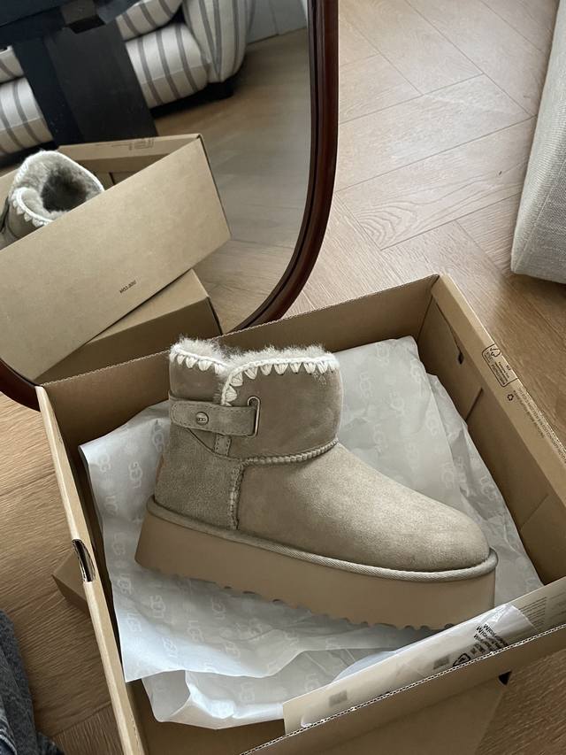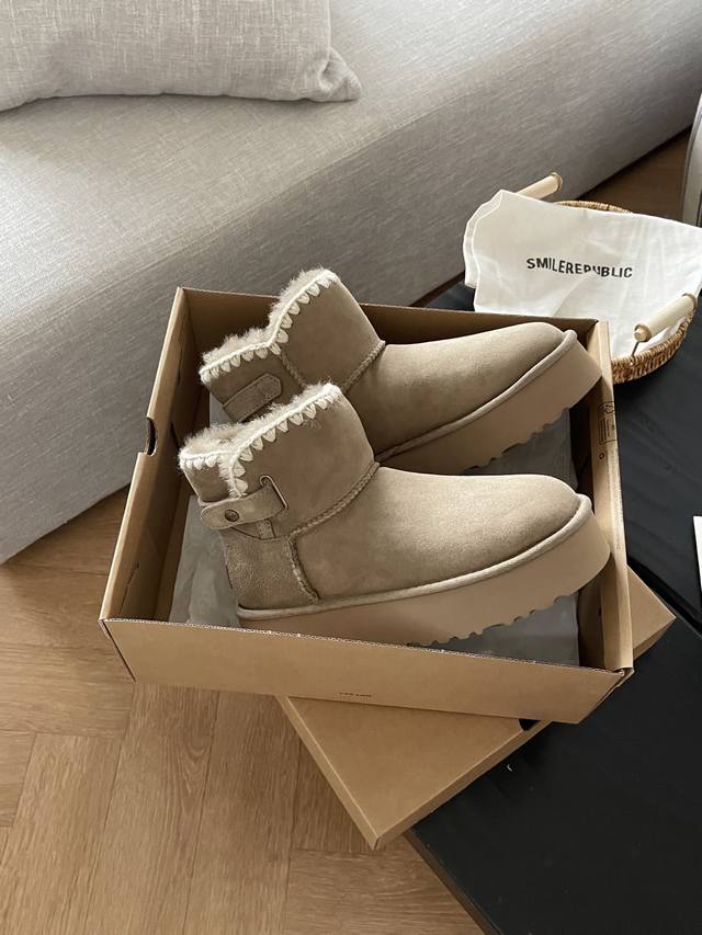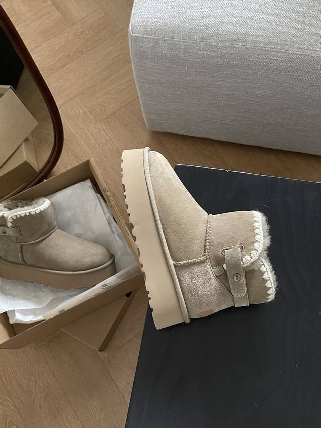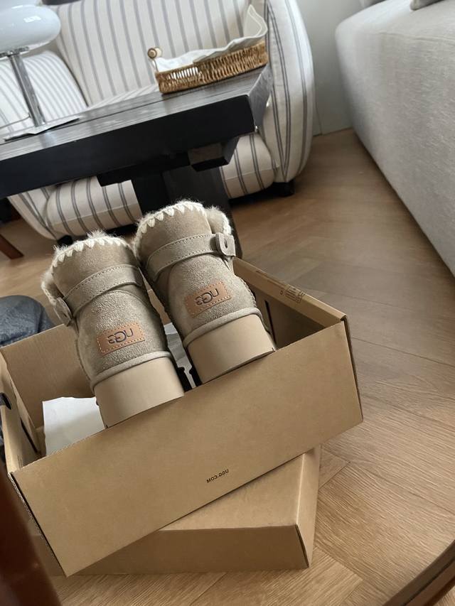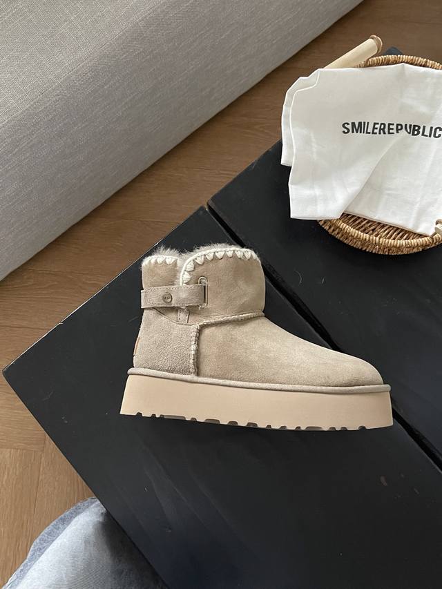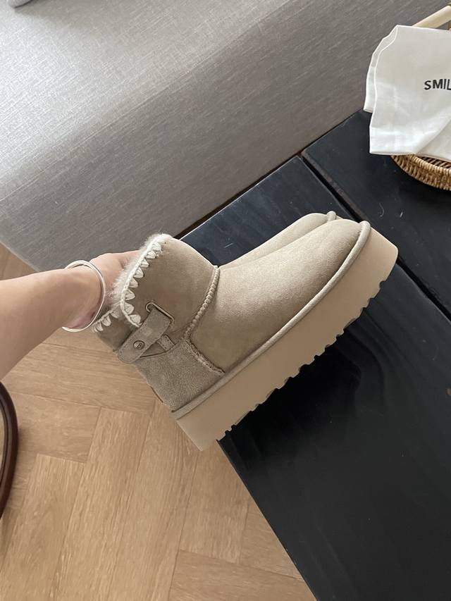 毛线编织小短靴 比普通雪地靴多了编织和搭扣 编织毛线搭配皮扣 上脚细节满满 特别可爱百搭任何风格 安排安排~ :-