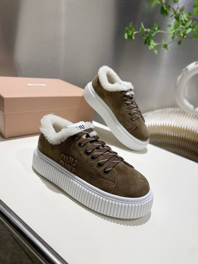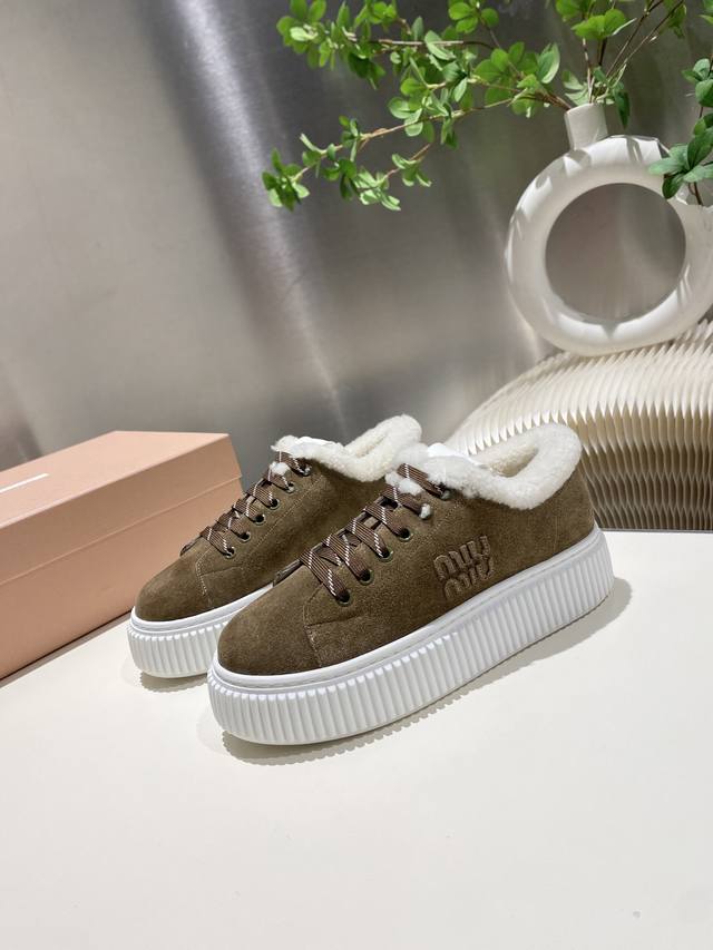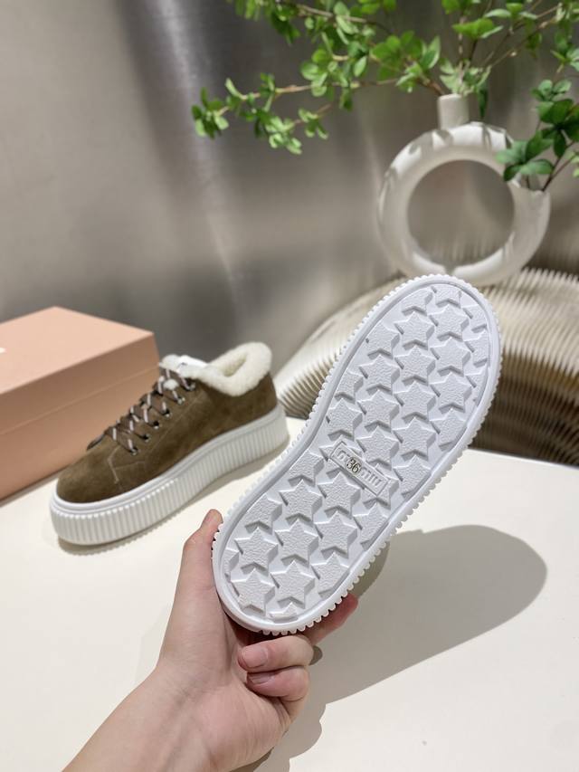毛里 。2025缪缪秋冬新款 厚底 饼干鞋 ,简约造型,原版开模鞋底, DDD 饼干鞋的热度真的是只增不减的 不仅因为其极高的配适性 也得益于其出众的脚感之鞋底一层层波浪就像饼干 一 般!颜值在线抗打而Miu家鞋款一向走的是少女范儿 没多少个女生能逃得过缪家的甜美!而这一次则是Miu家的饼干鞋系列 DDD 虽说是简约的设计 但这个Logo鞋舌也极具辦识度!随意搭配长裙 短裙牛仔裤休闲系列等 都能穿出与众不同的风格 DDD 鞋面:牛反绒 内里,羊毛 DDD 原版开模大底.底6Cm DDD 35-41 41定