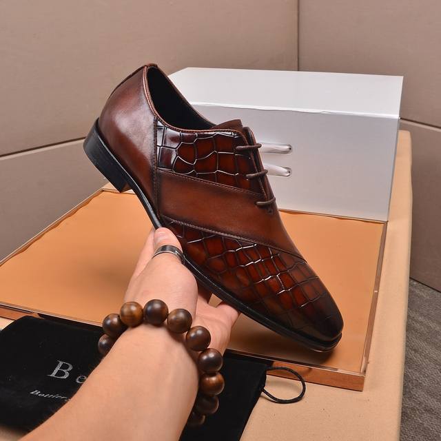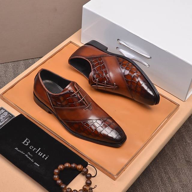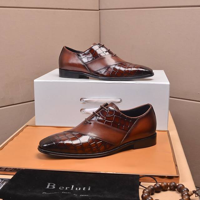 水染牛里 顶级品质 布鲁提 Berlu*I~皮革牛津鞋,高端男士正装商务皮鞋,顶级原单1:1正品货!原版进口意大利原生态牛皮胚,手工绘图抛光工艺,水染牛皮透气内里垫脚 伟波轮 超轻 耐磨 舒适原版双色鞋底,码数:38-45 颜色:3色可选