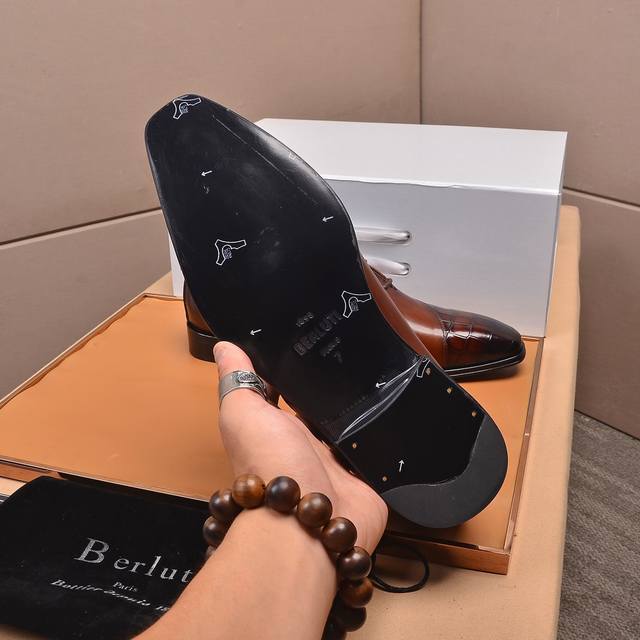 水染牛里 顶级品质 布鲁提 Berlu*I~皮革牛津鞋,高端男士正装商务皮鞋,顶级原单1:1正品货!原版进口意大利原生态牛皮胚,手工绘图抛光工艺,水染牛皮透气内
