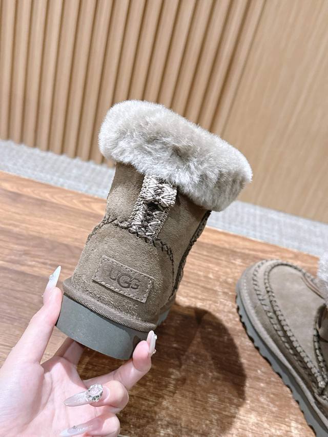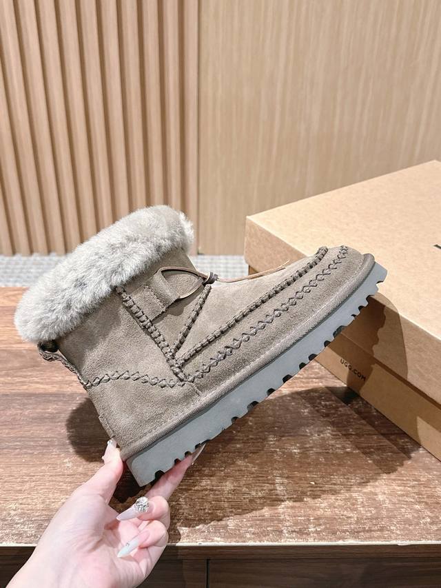 油叽叽经典中筒靴 阿尔派系列 在寒冷冬日每一步注入温暖与风格 DDD 系列以其独特的缝线装饰设计而著称,展现出精致的手工艺和无与伦比的优雅风范 DDD 鞋面甄选上乘翻毛皮材质,搭配精致缝线装饰,展现匠心工艺与时尚感。鞋口特别设计了溢毛效果,在寒冷的冬季亦能保持温暖。 DDD 内里采用天然羊皮毛一体材质,优雅贴合每一寸足部轮廓,带来温暖与柔软的双重体验。 DDD 3厘米左右的Eva大底配合品牌标识,不仅为行走增添舒适缓震效果,同时轻巧灵活,使每一步都如此轻松。经典设计与现代功能的完美结合! DDD 尺码:3