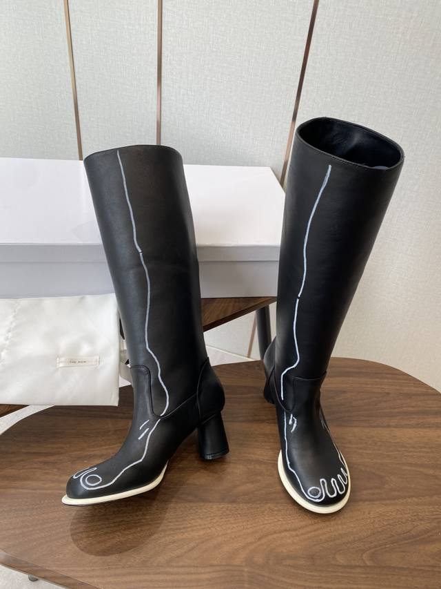 涂鸦款+50 The Row 25 秋冬新款高跟靴长款 圆头鞋头尽显性感,穿搭显瘦长腿神器 一双有设计感的极简长靴可以让人成为整个冬天的主角 低调优雅与时髦度拉