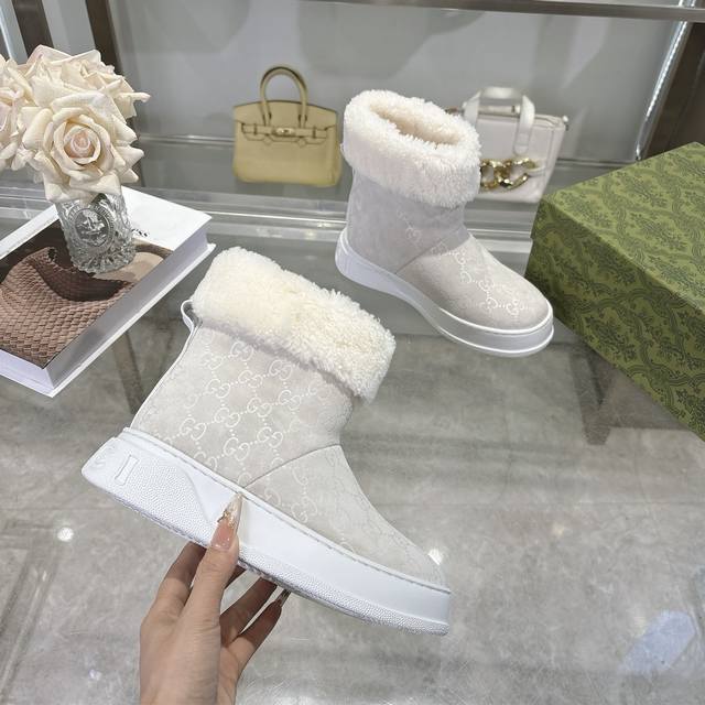 爆款 Gg新款女士美利奴羊毛内里靴 Ddd 这款女士靴采用麂皮精制而成,兼具舒适感与经典传承。柔软的美利奴羊毛内衬带来温暖奢华的穿着体验,而标志性的Gg橡胶鞋底则以品牌经典的字母组合图案为灵感,增添了一抹大胆的现代气息。 DDD 反绒牛皮Gg鞋面 Ddd 美利奴羊毛衬里 Ddd Gg橡胶发泡超轻鞋底 Ddd 平坦底 Ddd 码数36一42码, DDD
