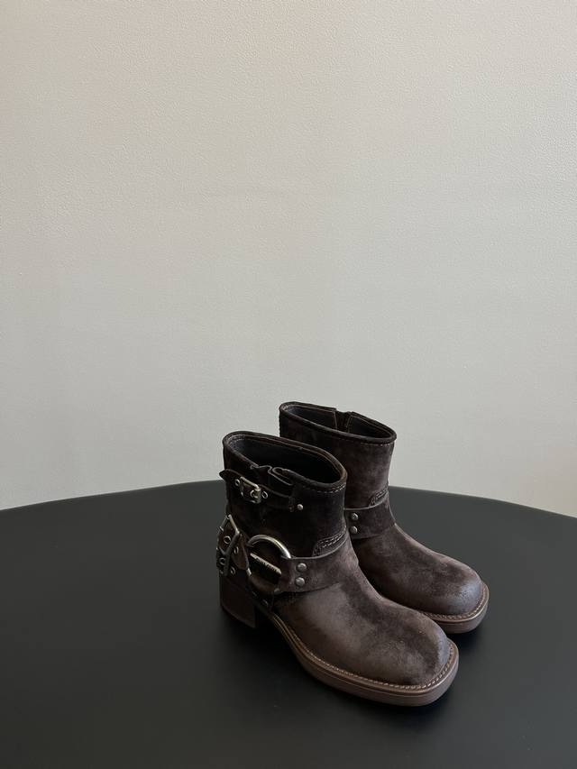 爆款 Miumiu秋冬限量走秀款中筒靴! 今年最值得入手的靴子 没有之一!Miumiu今年秋冬确实很精彩啊 酷炫狂炸 一看就是很有钱的样子 秋冬限定款!看着很硬的样子 其实非常软巨好穿!脚感超赞! 靴筒宽大 不管腿粗腿细 都能穿出宽松感而且非常显腿直!!朋克风十足! 鞋面:双色法国小牛皮 麂皮 内里:牛皮 大底:原版开模Tpu大底 码数:35-40 只换码不退,女40订做不退不换