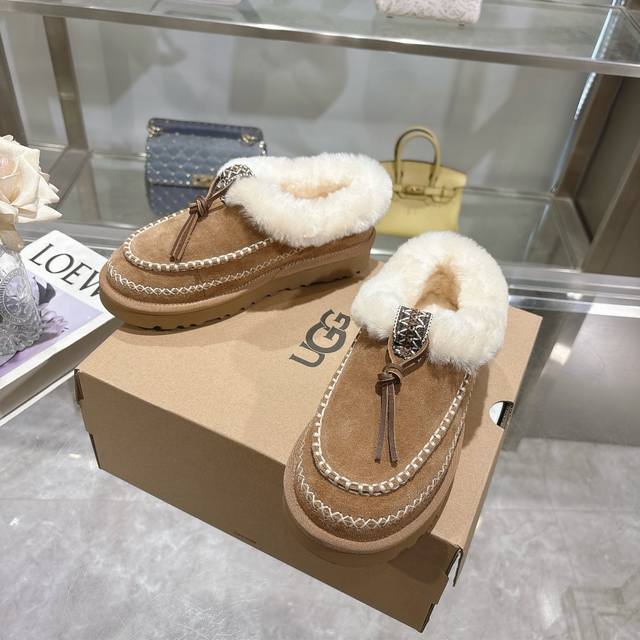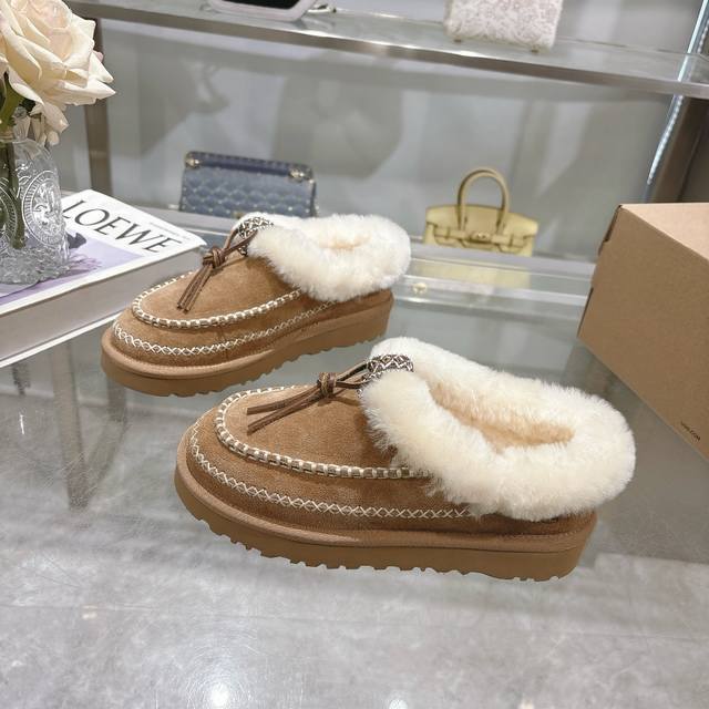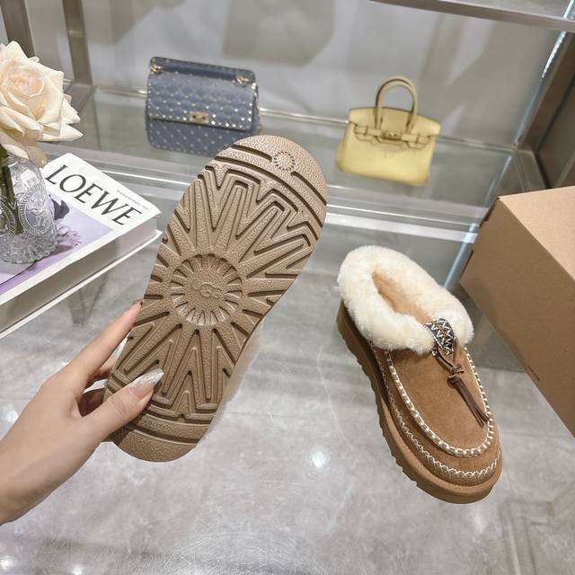 爆款 P 秋冬新款阿尔派款女士雪地靴时尚舒适纯色平底保暖经典茸茸短款半包雪地靴 品名:金典半包拖 阿尔派款 款号:1158258 鞋面:牛皮反绒皮 内里:羊皮毛