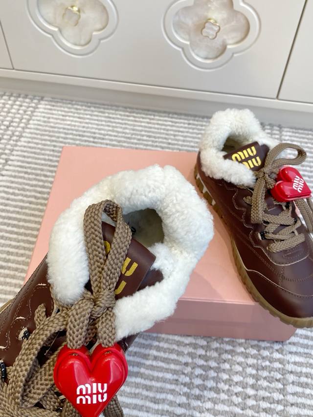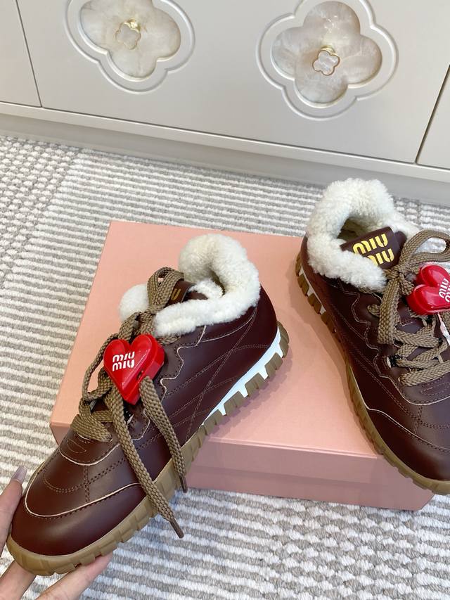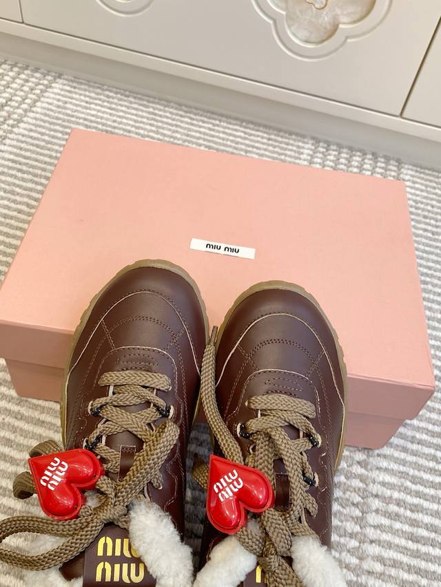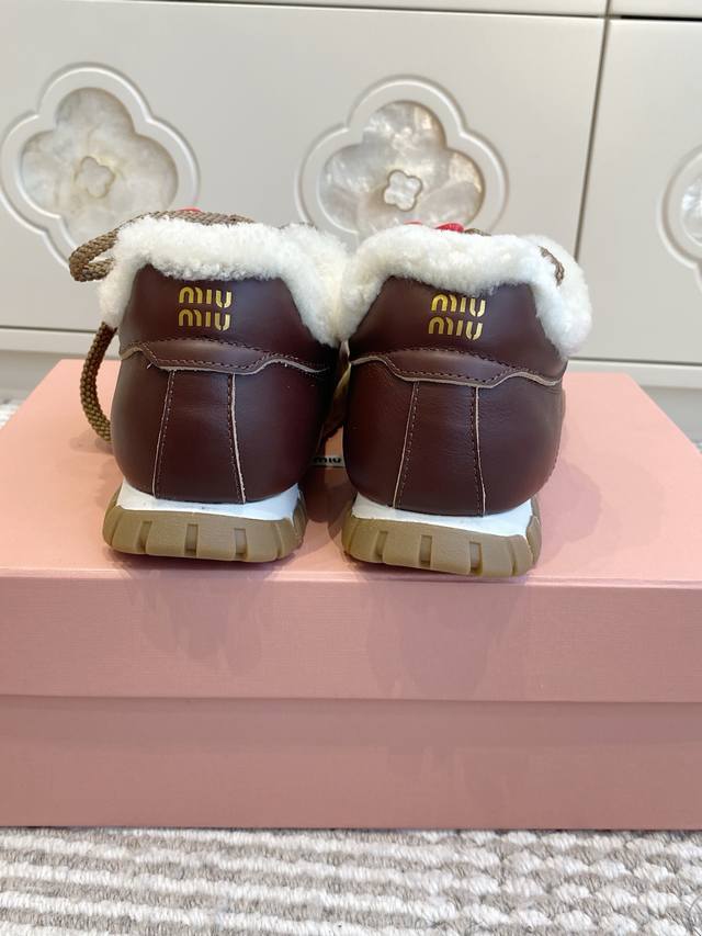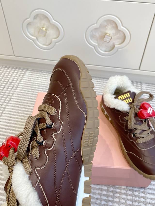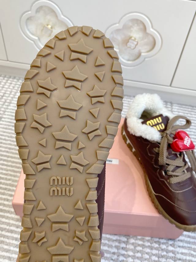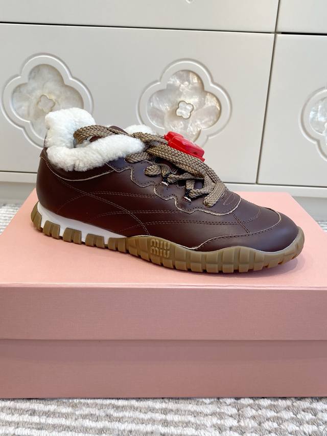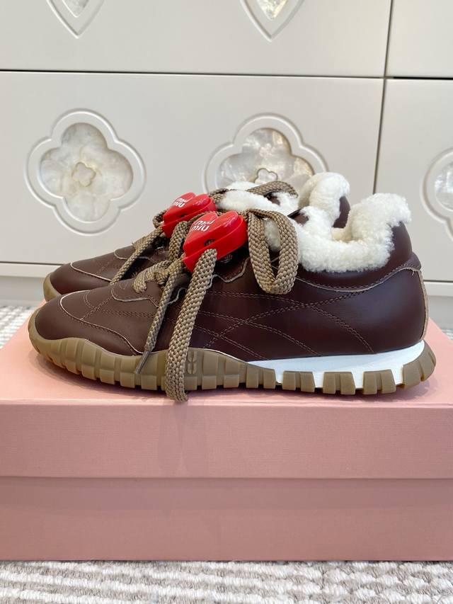/ 爱心50 代购级Miumiu 缪缪25春夏Tyre新款 饼干鞋 阿甘鞋休闲羊毛运动鞋 Tyre集优雅气质与运动功能于一身。动感橡胶鞋底柔韧耐磨,令人联想起轮胎花