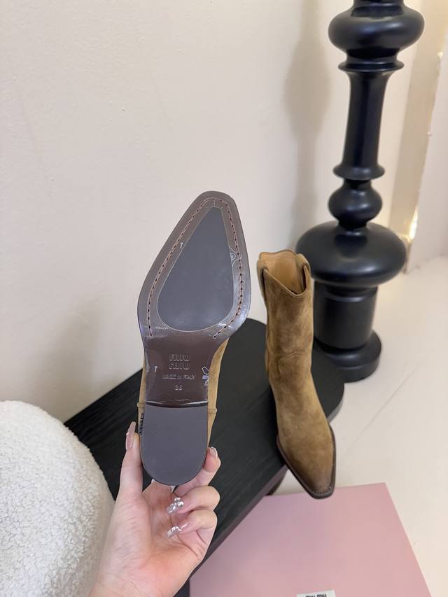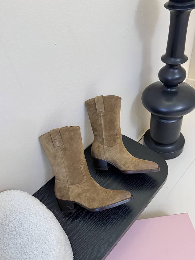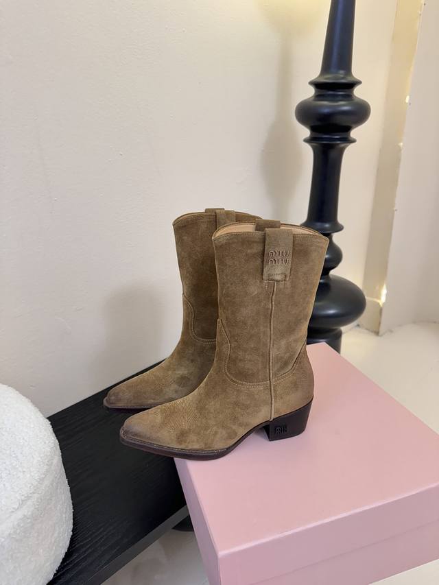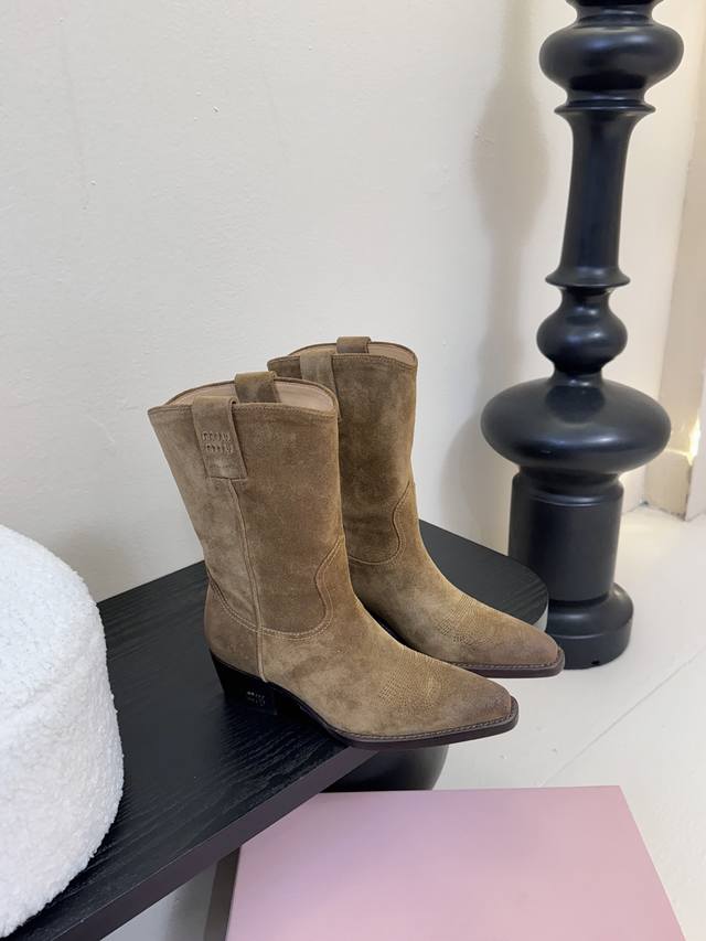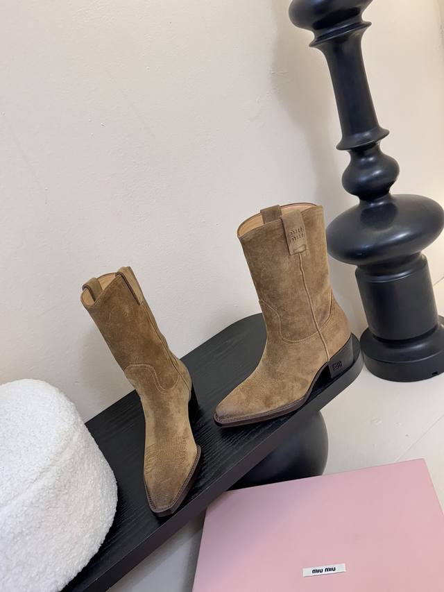 牛京 牛皮 Miumiu缪缪秋冬最新款西部牛仔靴 今年最值得入手的靴子 没有之一!易梦玲同款超多网红明星上脚 Miumiu今年秋冬确实泰酷辣 秋冬限定款 专柜非
