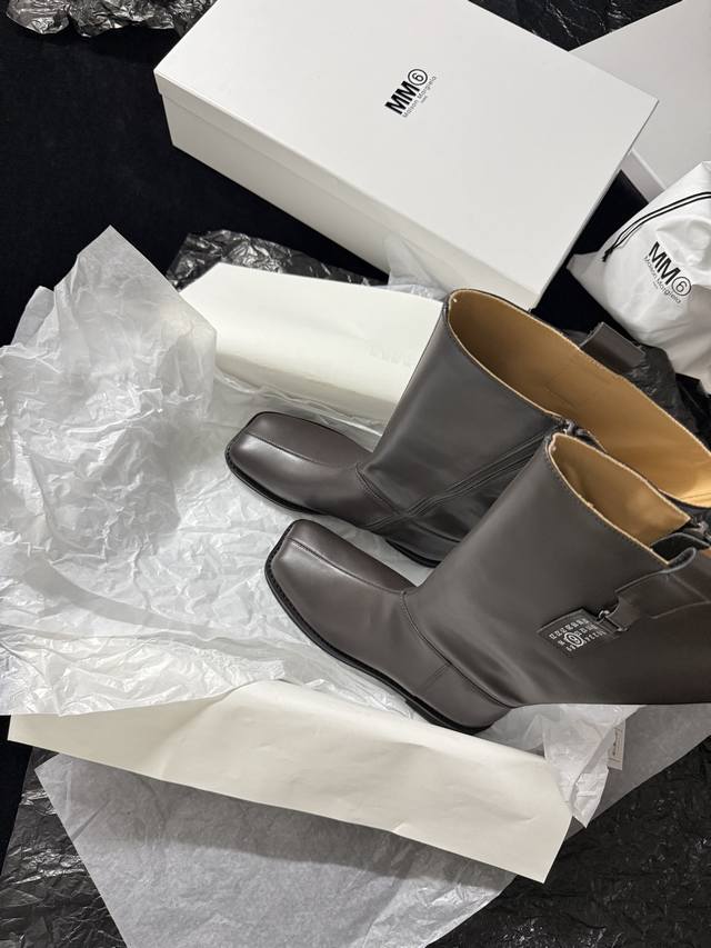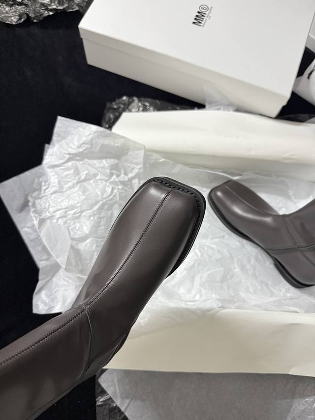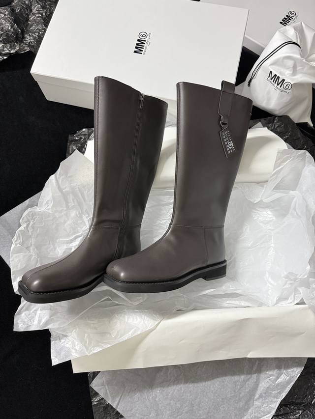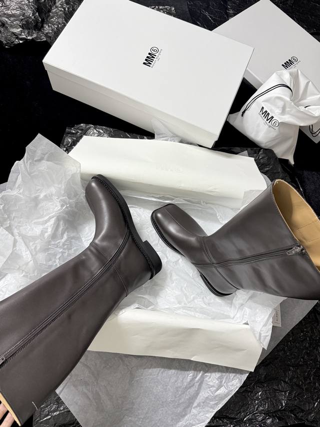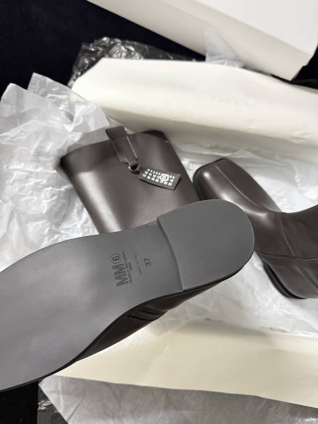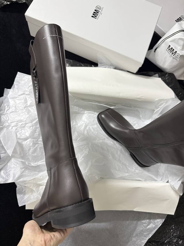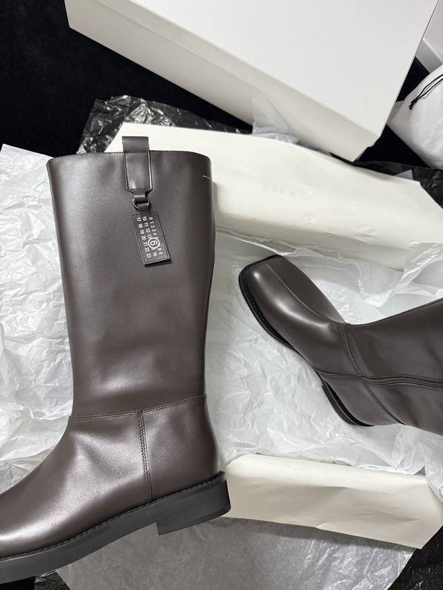 牛皮 p: 牛京p:480 DDD Maison Margiela* 战靴 DDD 酷飒出街 就靠这双靴 DDD 黑色皮革淬炼复古腔调 长筒设计拉满气场 专属铭牌更添潮酷细节 踩上它 每一步都是时髦宣言 轻松拿捏秋冬小众高级感 让你在穿搭赛道上Slay全场~ DDD 鞋面进口牛皮.牛京 内里进口牛皮 Zp开模发泡大底 35-39 40定 DDD