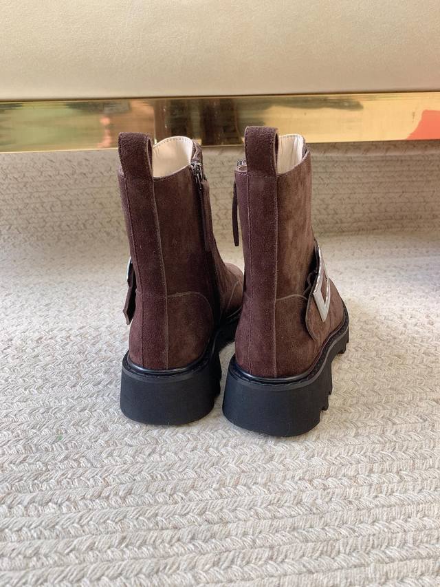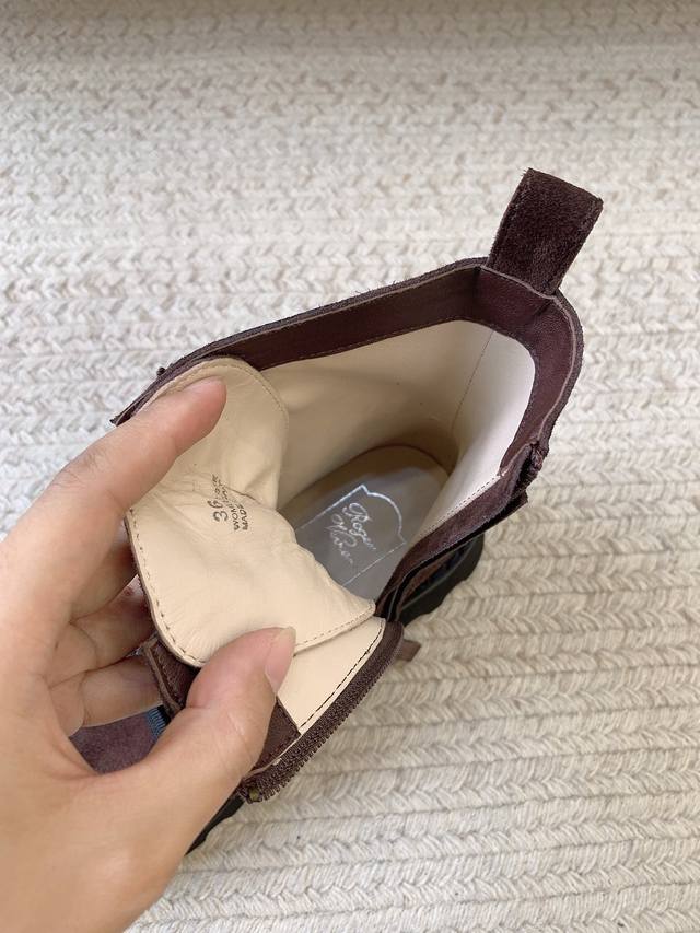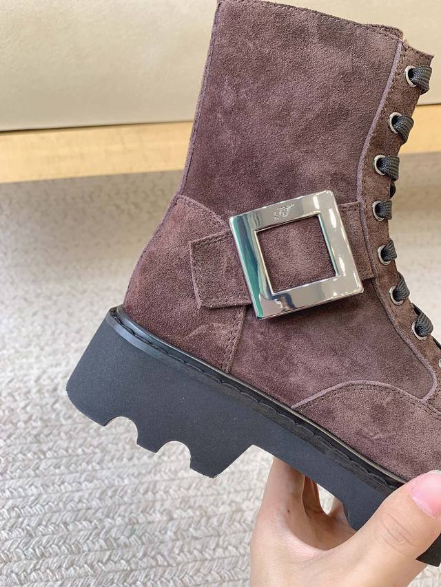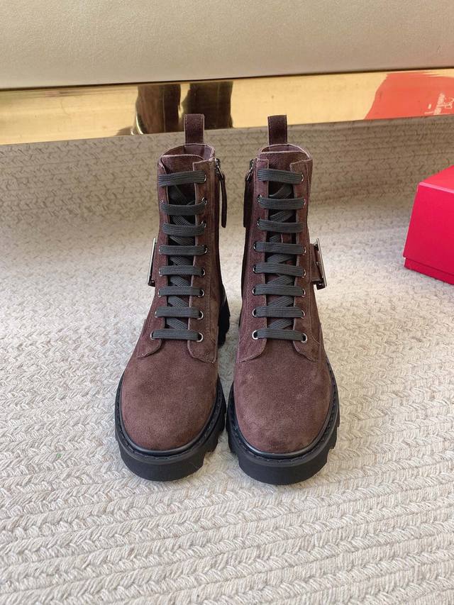/ 牛绒 牛皮 Roger Vivie*Ss25新款侧拉链系带短靴 原版套楦 顶级品质 材质 鞋面:进口牛绒 进口牛皮 内里:进口羊皮里 大底:真皮大底 码数:35