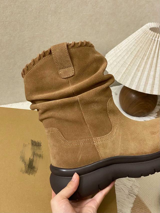 独家亮点升级: 靴筒专属打褶设计,超显腿直腿细 鞋底前薄后厚,行走如履平地,防滑耐磨 内里鞋垫羊皮毛一体,羊毛长达1.5Cm 鞋面覆头层牛皮,保暖同时拒绝闷脚
