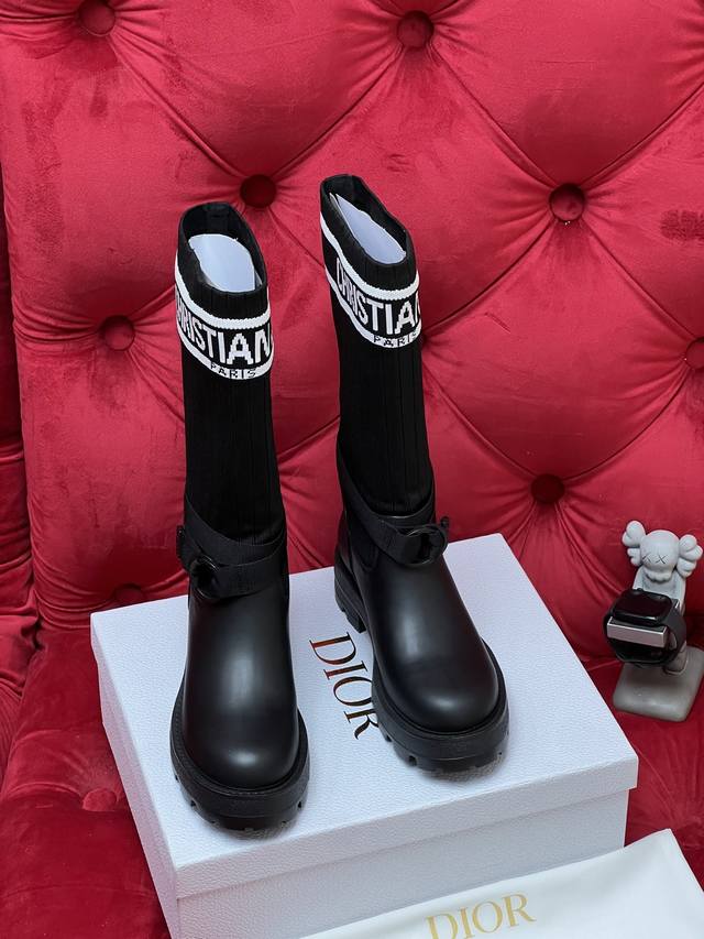 独家实拍 顶级版本 2026Ss 秋冬最新色高定海报款D-Mor电绣拼色字母Logo 圆头中筒 飞织 靴脚骑士靴 面料:原版牛皮 原版开模飞织 内里:原版内里