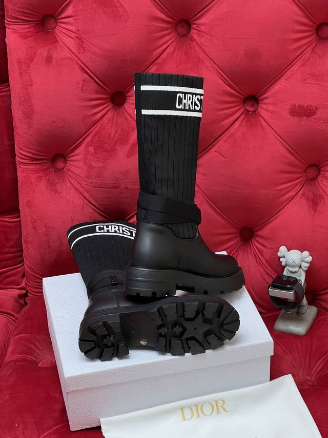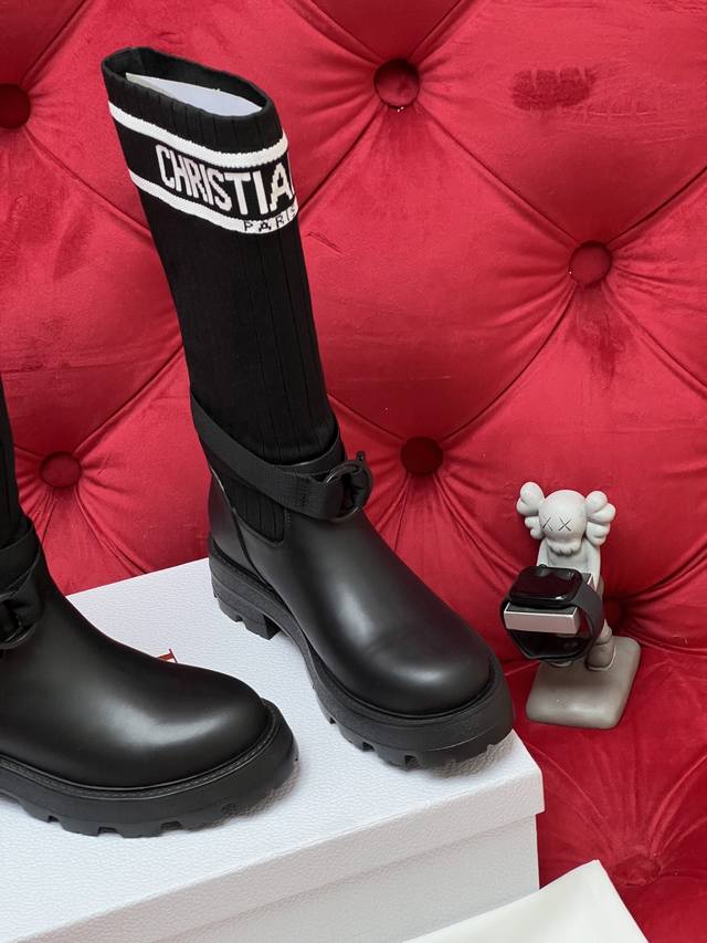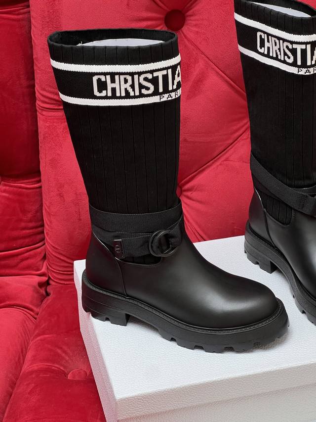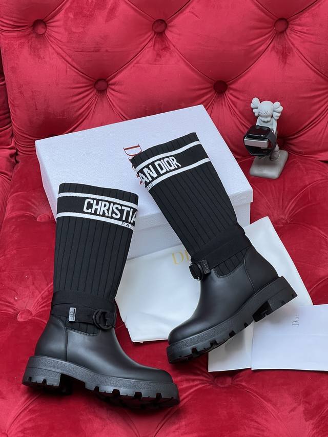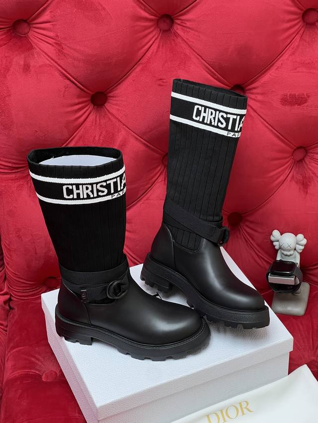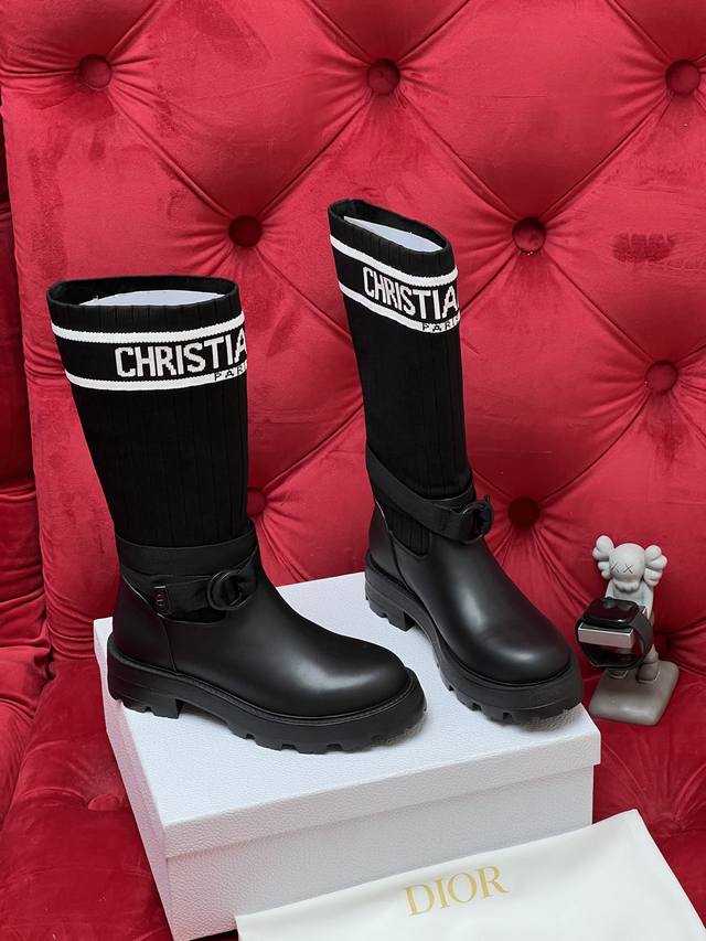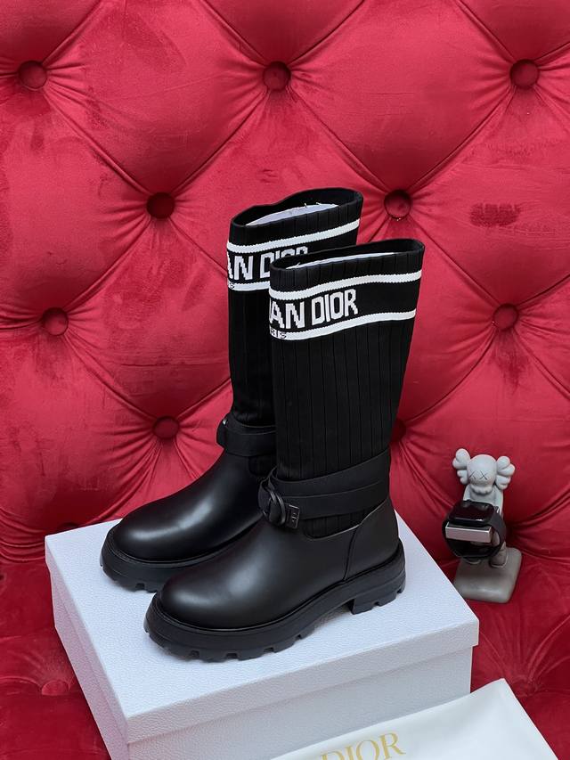 / 独家实拍 顶级版本 2026Ss 秋冬最新色高定海报款D-Mor电绣拼色字母Logo 圆头中筒 飞织 靴脚骑士靴 面料:原版牛皮 原版开模飞织 内里:原版内里