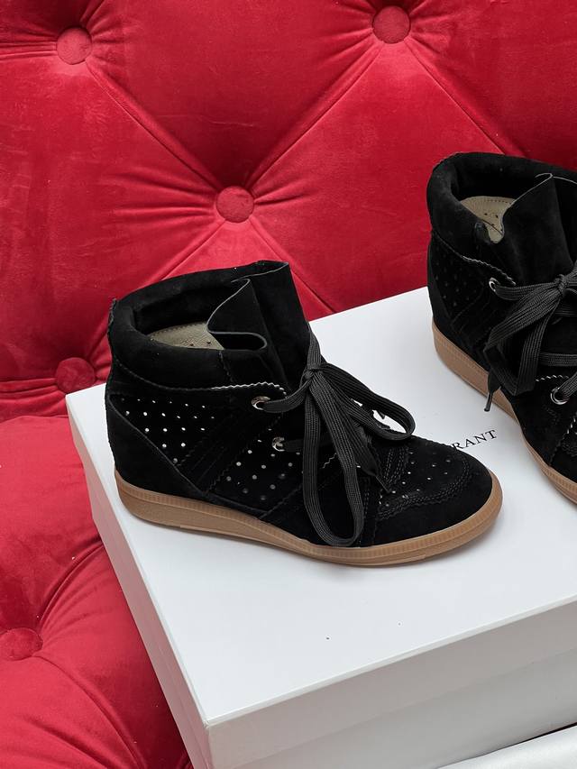 独家实拍 顶级版本 25Ss 经典之作 风靡欧美明星娱乐圈的Isabel Marant Sneaker 伊莎贝尔经典隐形内增高短靴 DDD 增高效果明显 穿上立马见效 人工体学设计 穿久不累脚 小腿更修长 身材更挺拔 全系列热卖中 真皮内增高时尚运动休闲鞋 DDD 全球首款打造不失时尚又带内增高的经典运动休闲鞋 小个子福利款 DDD 鞋面:进口牛皮 牛猄搭配 DDD 内里:舒适透气猪皮 DDD Size:34-42 34.40.41.42订做不退换 DDD