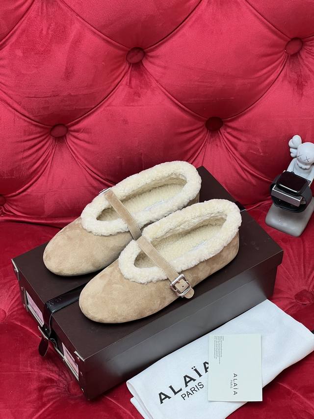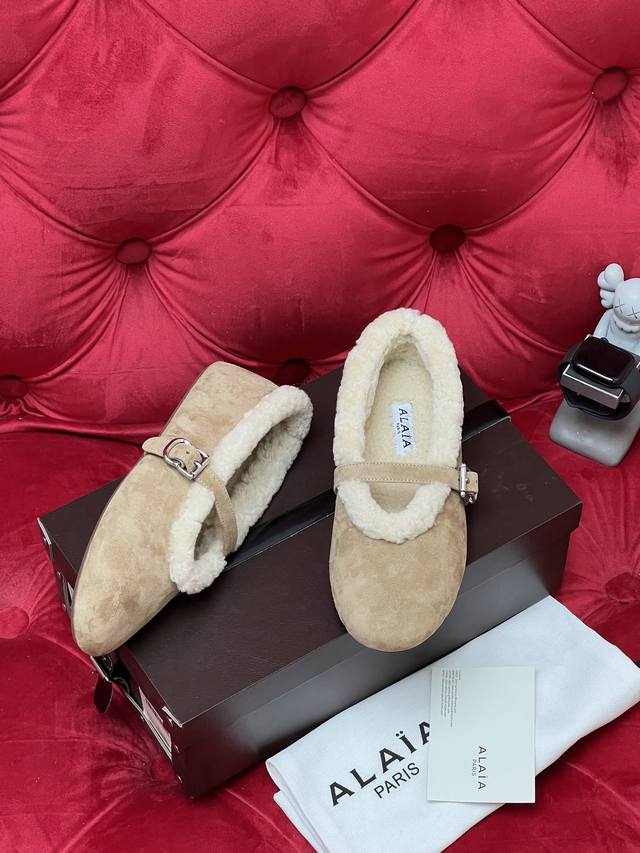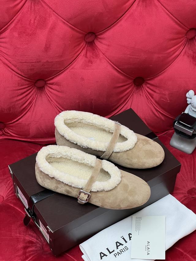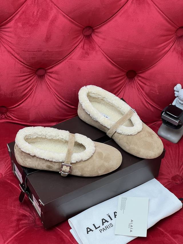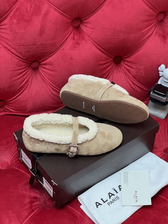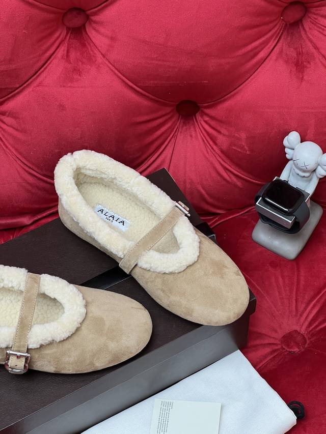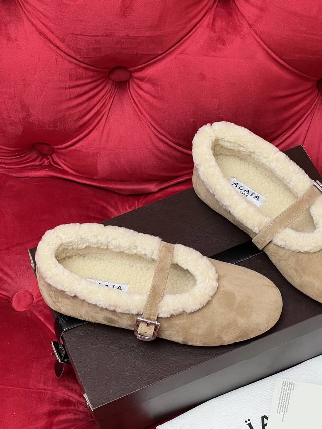 独家实拍 顶级版本 Alaia 阿莱亚26Ss秋冬新品平底玛丽珍毛毛鞋颗粒羊羔毛保暖包子鞋 原版1:1进口颗粒羊羔毛 DDD 小众潮牌秋冬季不可错过的时尚单品 鞋面采用优质的皮毛材质 触感柔软细腻 每一步都像是踩在温暖的毛毯上 让你在寒冷的冬日也能感受到融融暖意 毛毛的质感不仅保暖更是增添了一份毛茸茸的可爱 让人忍不住多看几眼 DDD 鞋面:采用进口羊反绒 DDD 内里:垫脚颗粒羊羔毛 DDD 鞋底:原版开模橡胶大底 DDD Size:35-42 40 41 42定不退换 DDD