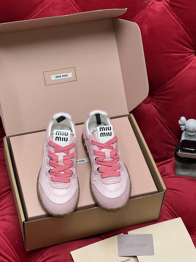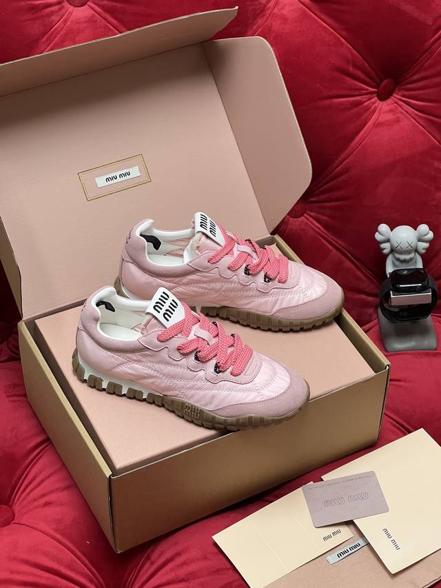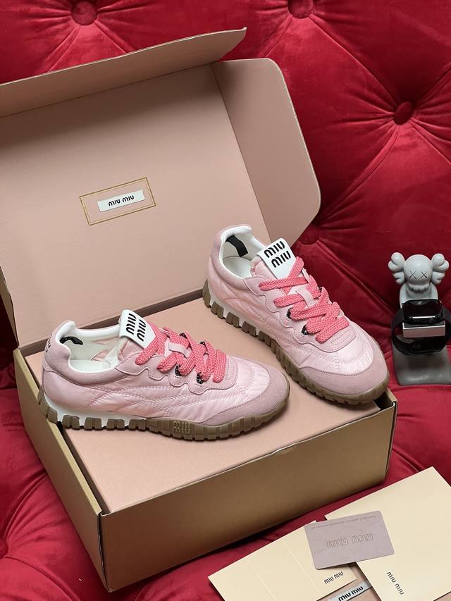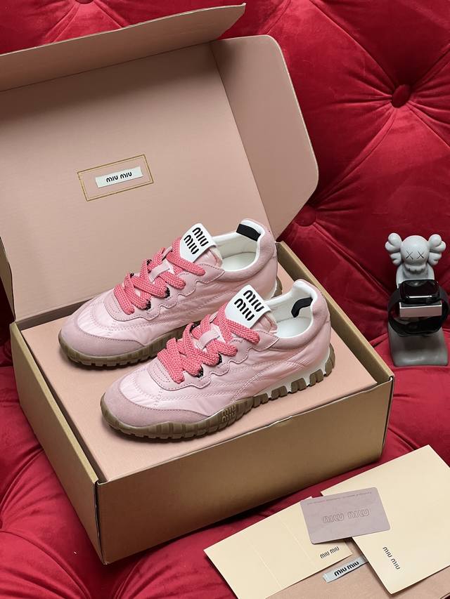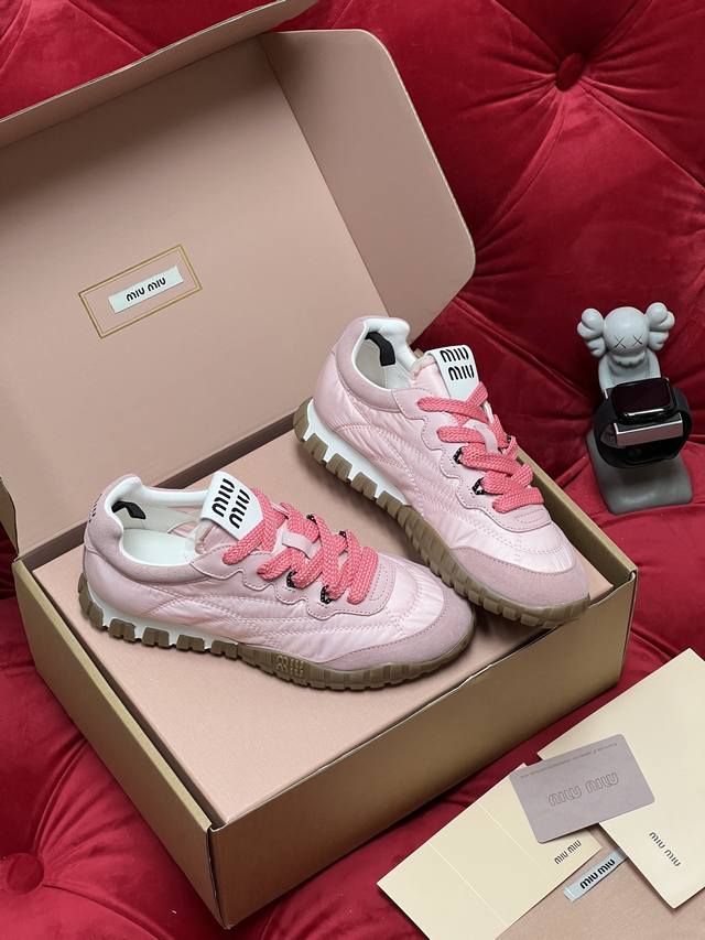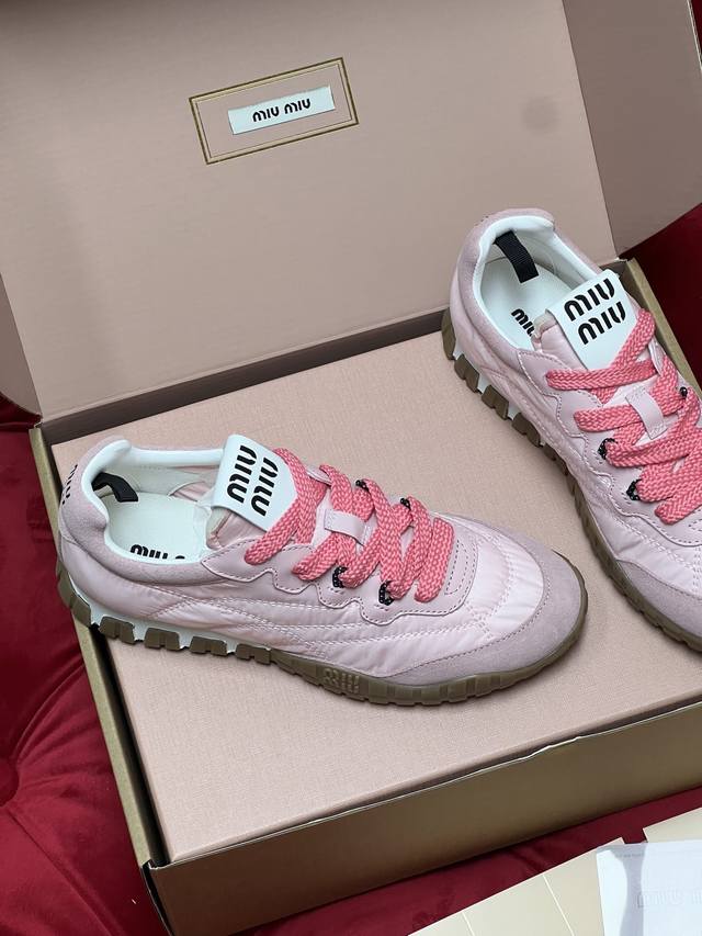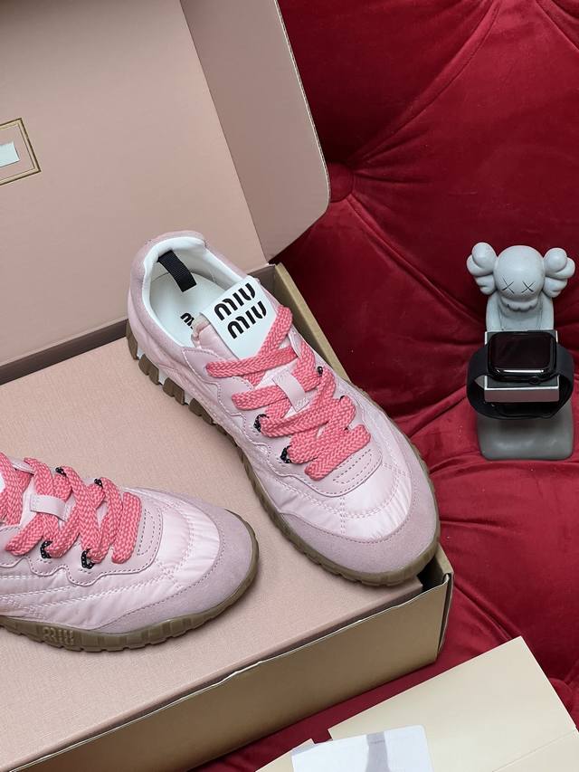 / 独家实拍 顶级版本 Miu Miu 26Ss 春夏新款走秀Miumiu 德训 休闲鞋秀场工艺来自Miu Miu系列的细节特写 新季的潮流此刻挚爱的概念 多元对撞