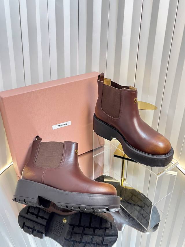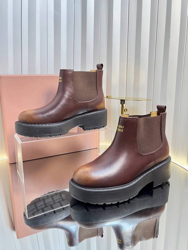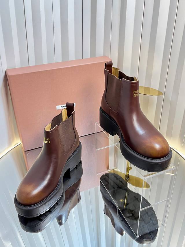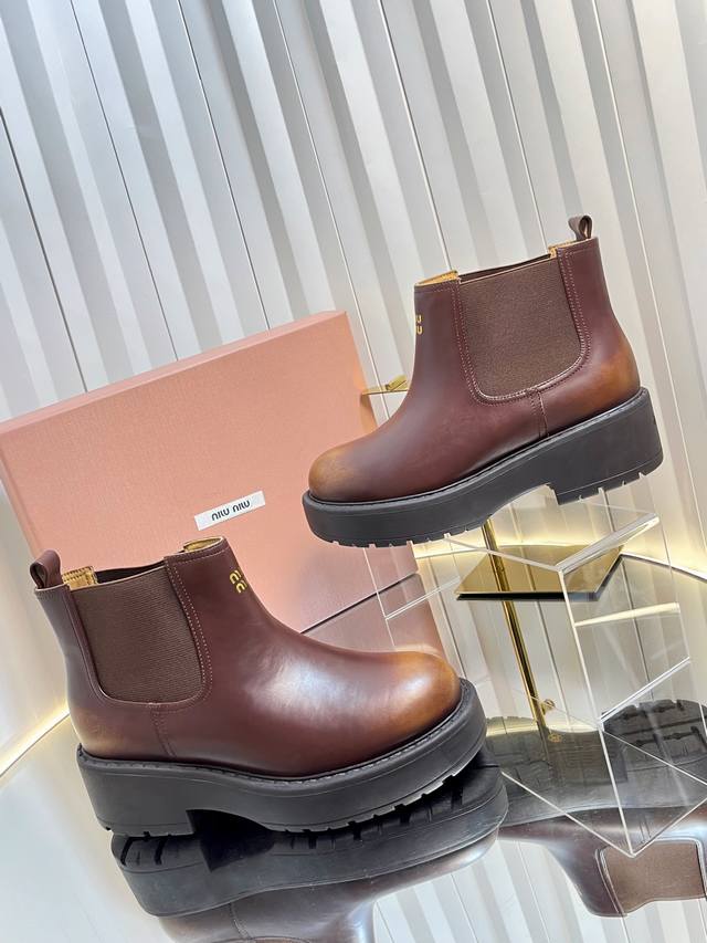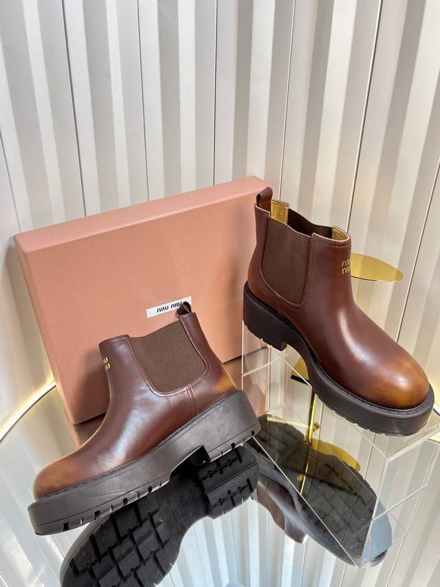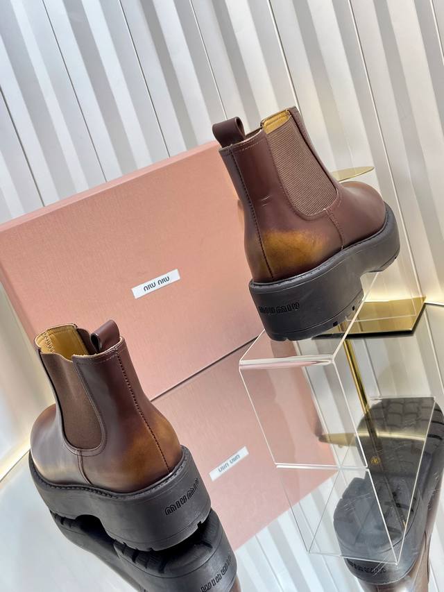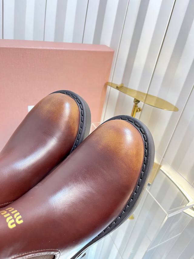 独家新品 Miumi* 25 秋冬新款擦色做旧矮靴 Miumi* 今年秋冬确实很精彩啊 酷炫狂炸 一看就是很有钱的样子 秋冬限定款!做旧复古双拼擦色 柔软的麂皮