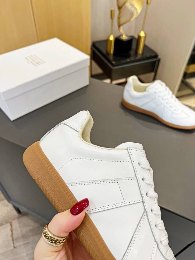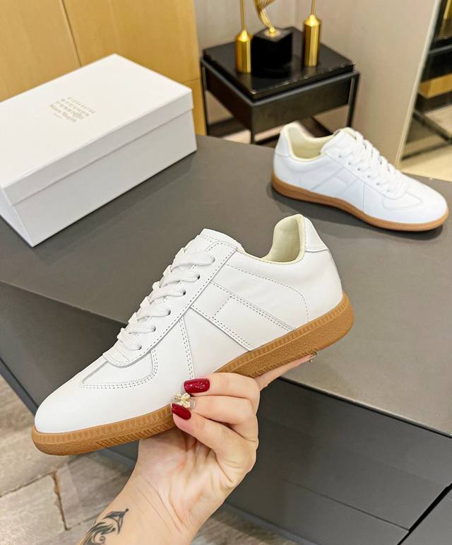 独家顶级版本 M*M6M*Aison M*Argiela~25Vs新款复古休闲系列 Maisonmargielamm6德训休闲板鞋 复古拼色休闲鞋 光听到复古风就能立刻想到经典M*Arginal,复古时髦,春夏秋冬配色干净清爽集合,舒适,酷飒,休闲于一体的风格设计,很马吉拉风格,上脚无压力十足先锋元素,原版包装 一个轻奢潮款多元素结合玛吉拉设计师设计这一款德国训练鞋延续了经典的T形真皮拼接,经过设计团队多次的精心改良,只为让您体验最原始的军旅味道 ~设计师设计工艺:结合运动休闲拉邦套楦顶级工艺,不脱底,不