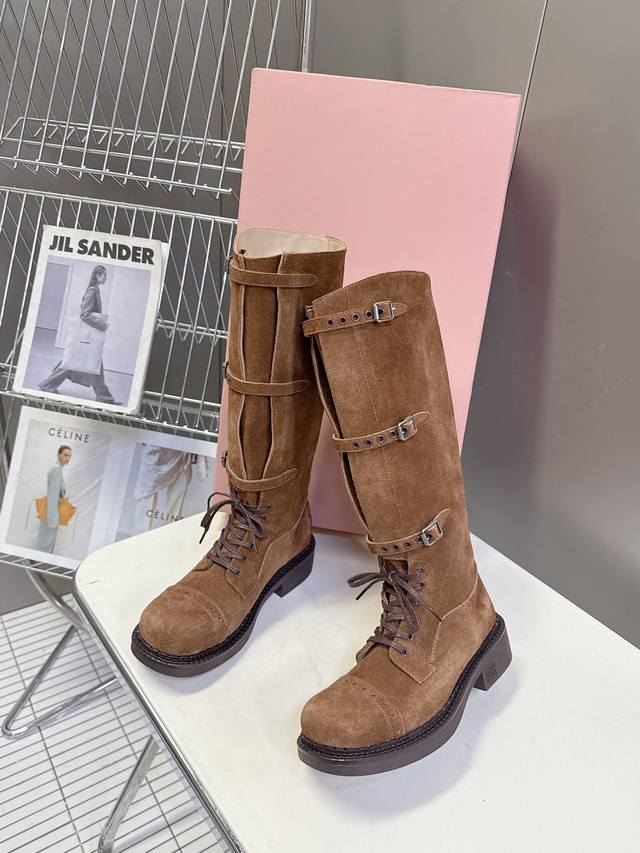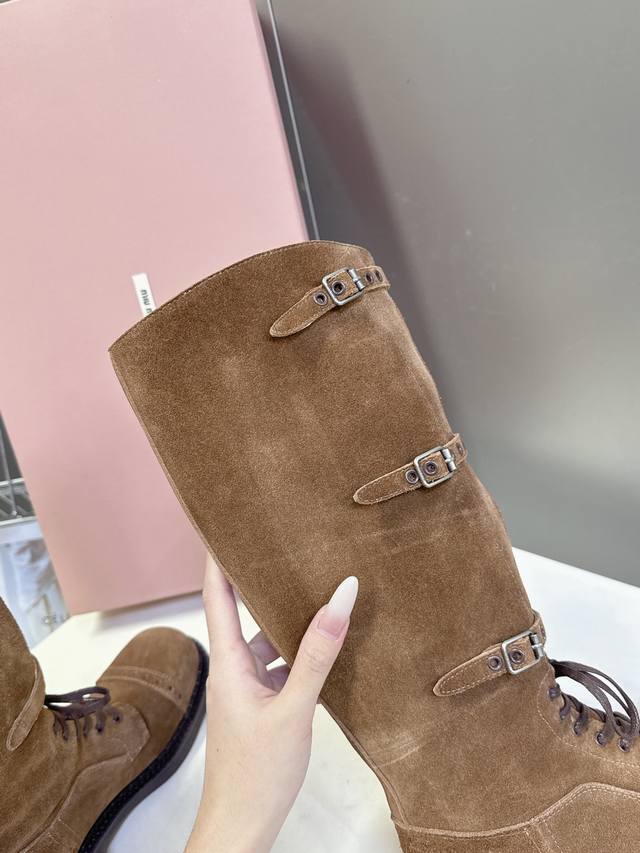 王炸来袭 Miumiu秋冬走秀款 机车风复古长靴 从高定秀款就一直备受关注的靴子 太太太好看了 订货会联系Sa马上拿下!皮料打版来回10次不止!后期会有更多升级