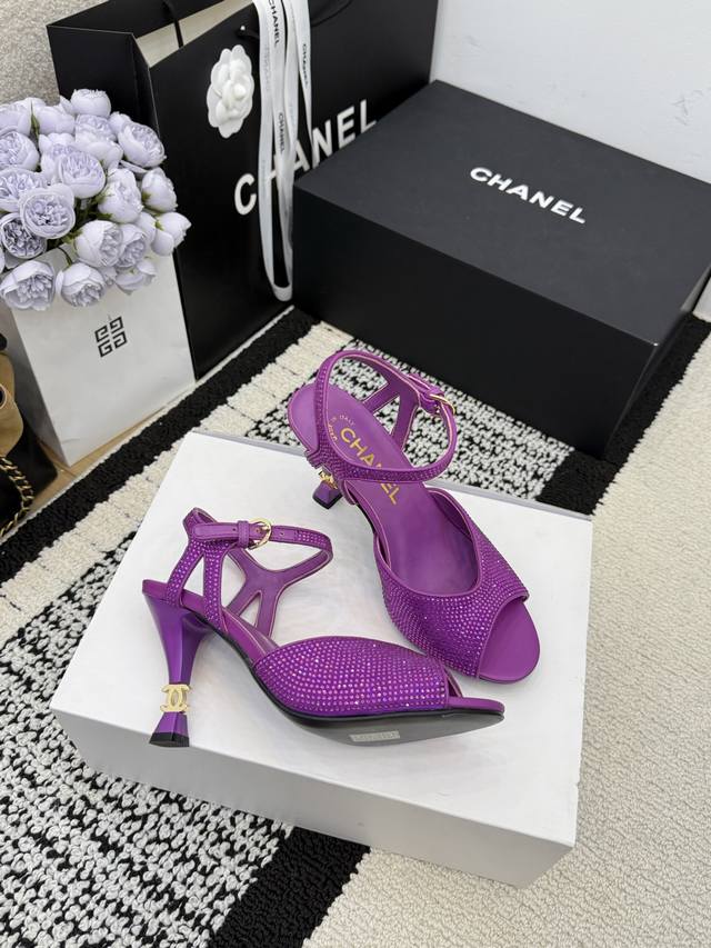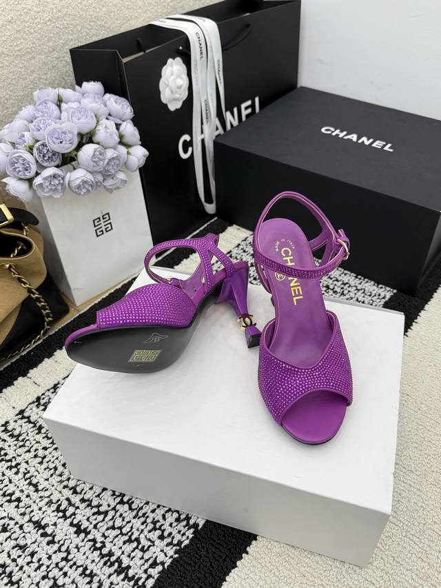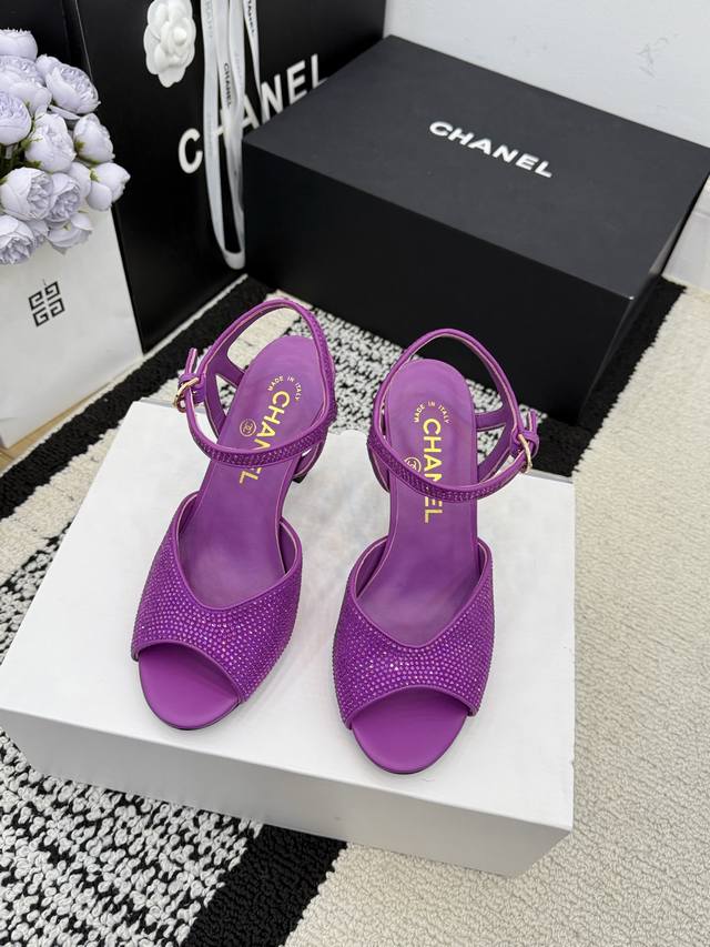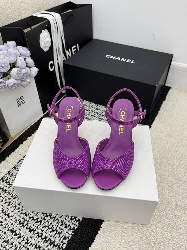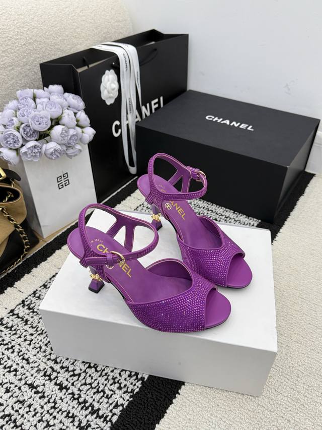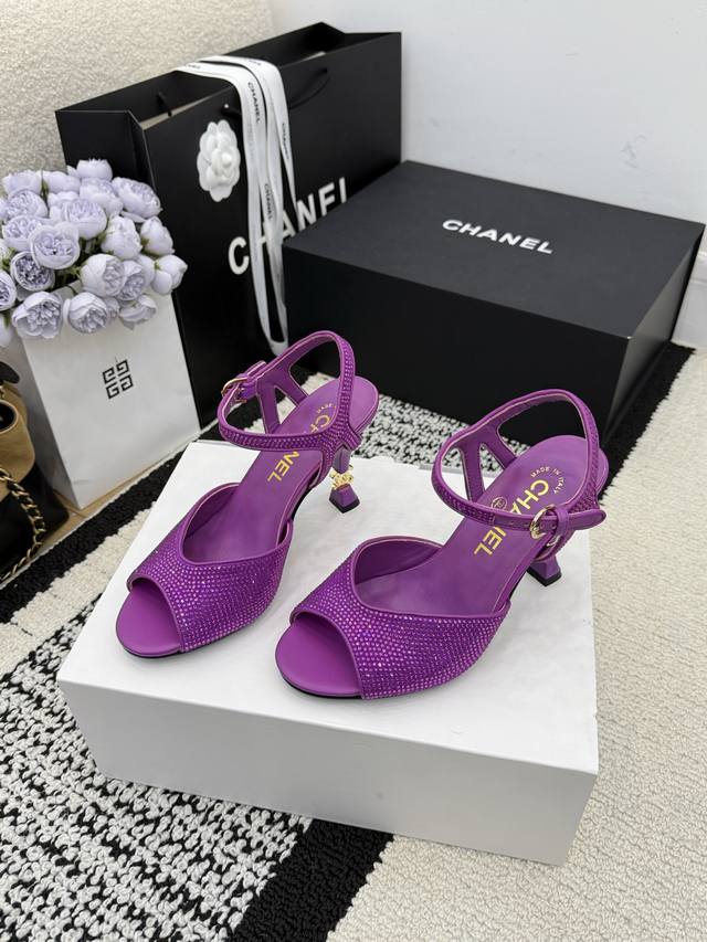 顶级版 R C 2025S 重工Rc蛇形系列,Bouquet 蝴蝶花朵水钻缎面细跟粗跟凉鞋℡...