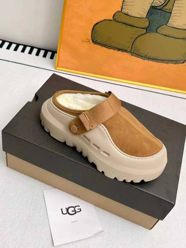 / 男女同款 Ugg 2025新品小土豆,半拖一脚蹬解锁松弛脚感,轻便薄底时刻轻盈时髦,随性走出全新风格,这感觉很Ugg,经典翻毛皮搭配柔软羊毛内里鞋垫,胶胶发泡大