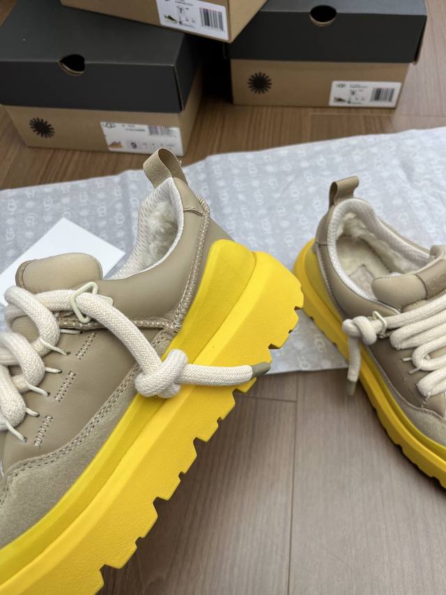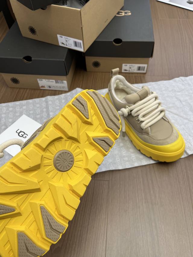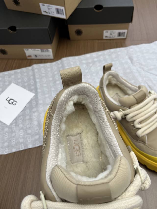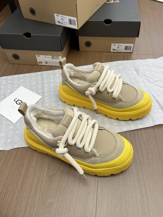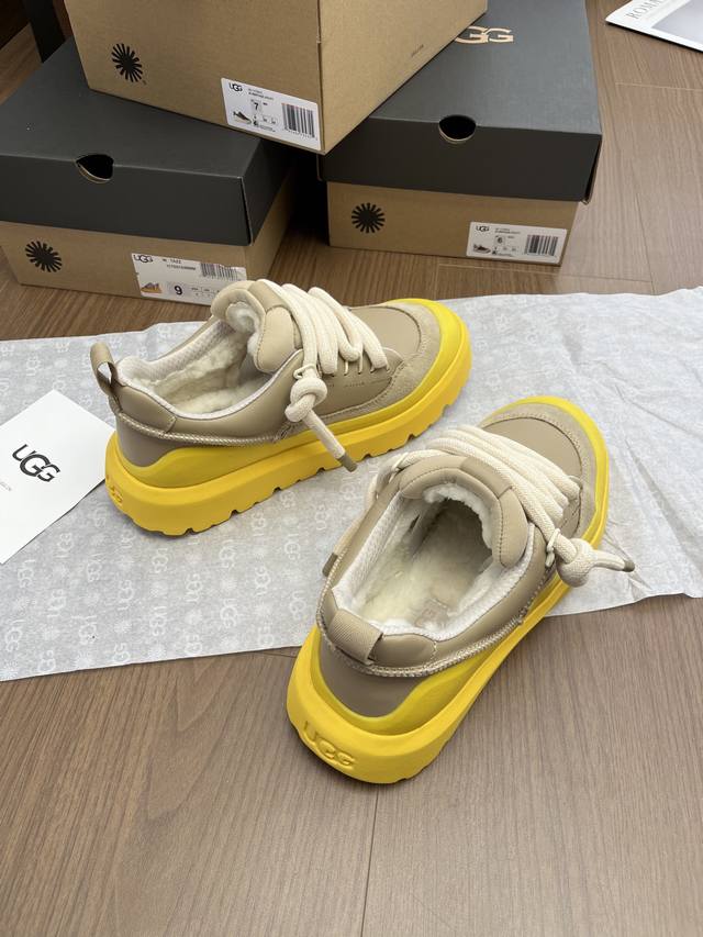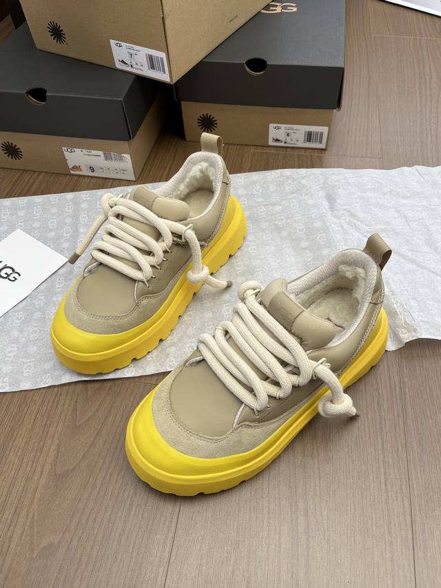 男款+50元,上新+汪苏泷同款绑带防水鞋,情侣U秋冬新款面包鞋|一脚沦陷的暖冬软 Fufu神靴来了!一眼心动的质感,上手就懂有多绝 DDD 鞋面是实打实的全粒面牛皮拼接牛翻毛,两种肌理碰撞出层次感,光面牛皮抗造耐脏,雨天溅到泥水也能轻松擦净。牛翻毛自带细腻绒毛感,摸上去温润又高级。搭配粗犷的粗绳鞋带,随手系个结都自带松弛感,完全戳中当下最火的慵懒风审美。 DDD 最惊艳的还是内里的羊皮毛一体!这可不是普通人造毛能比的澳洲进口的优质羊羔毛,细密厚实得像把小毛毯裹在脚上,吸湿又透气,穿一整天脚都是干爽暖乎的,