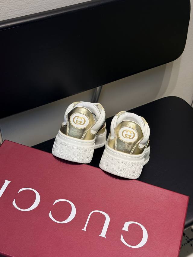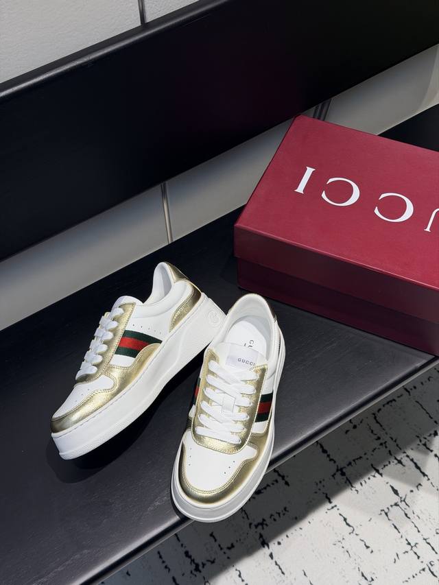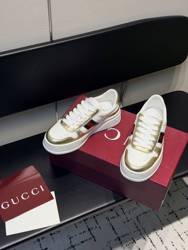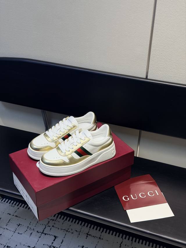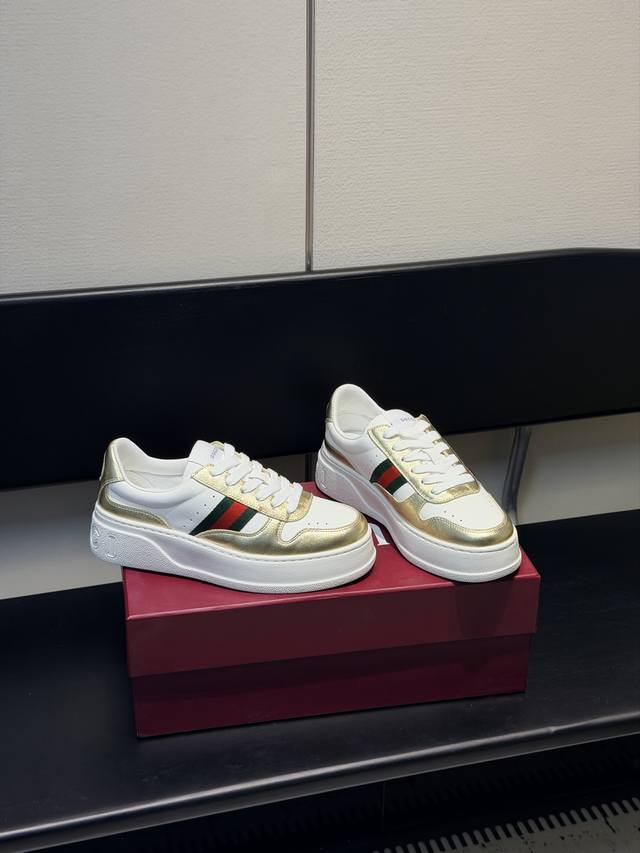 男款+50 Ddd Gg 专柜最新情侣款厚底饼干鞋 Ddd 代购级别 Gg最新Ip轻质厚底饼干鞋上脚秒内增高4Cm!! 简约 好搭且复古韵味十足~鞋舌最新防伪布标。且带电子芯片防伪。Gg 26早春New专柜最新情侣款厚底小白鞋 ! 鞋面采用进口环保水染小牛皮!+成型乳胶鞋垫。原版Ip轻质大底,一体射出成型超舒服有弹力,不要拿市面上普通Tr大底来比价格p,比舒适度。不是一个档次。不是一个级别! 尺码 :女款35-40,男款39-45全套包装。 DDD Ddd
