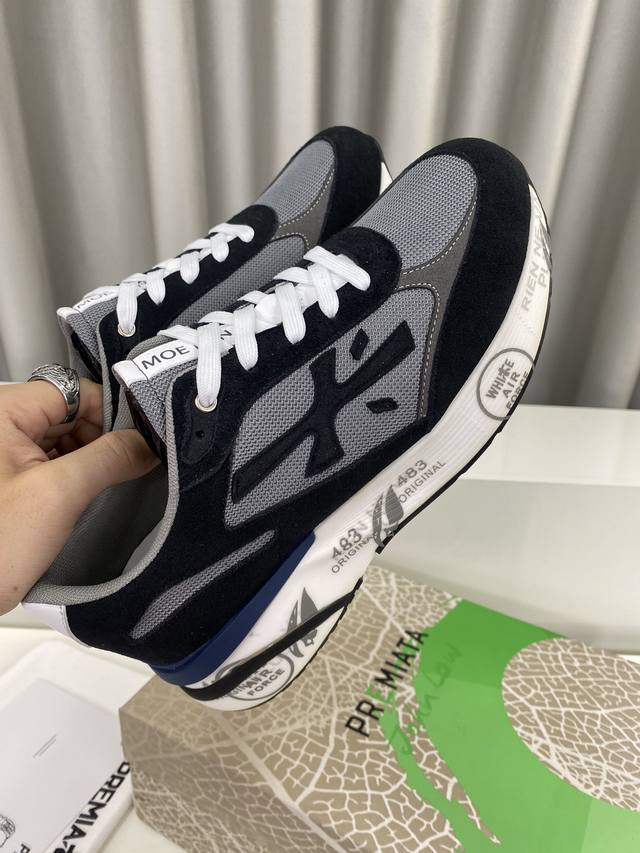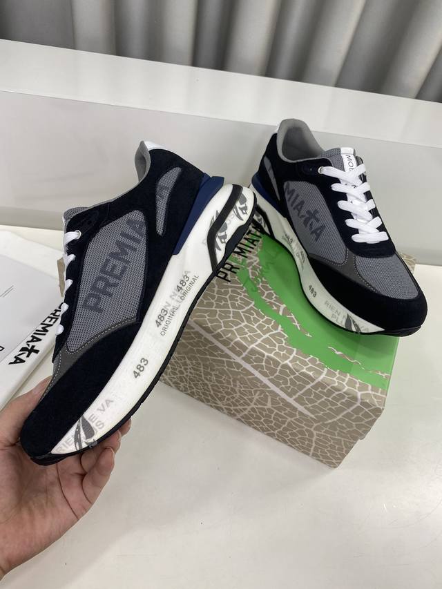 男 DDD premiata 普瑞米亚达 时尚、运动、休闲、慢跑、男鞋。 DDD 普瑞米亚达意大利名品百年历史,所有工艺全手工打造,米“字一样的Logo简称米字鞋。完美的融合了传统的制鞋方法和高科技研发成果,设计出了独具特色的外观,打造出了完全贴合人们脚型的鞋履。上脚舒适美观。 DDD 鞋面:牛反绒+牛皮+原版透气布 DDD 内里:透气尼龙网纱。 DDD 大底:Ip发泡大底超级轻盈舒适。 DDD 码数:男39-44 38、44定做不退换 DDD 全套专柜原包装 DDD