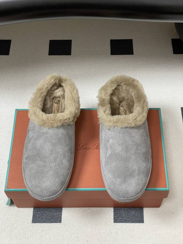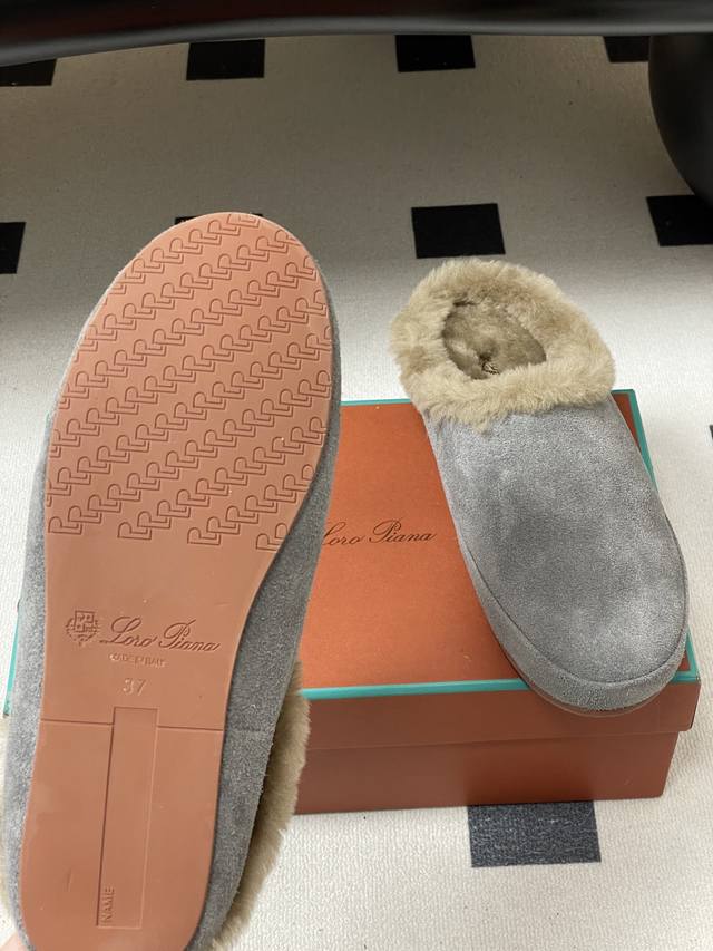 男+10 DDD Loro piana 诺悠翩雅 Lp60S秋冬新款 Tomori Sabot情侣款穆勒鞋老钱风绒面复古包头羊毛半拖鞋舒适勃肯鞋厚底懒人毛毛拖鞋 DDD 这款鞋履采用柔软的绒面牛皮革制成,质感丰富,通过Loro piana标志性精湛手工技艺精制而成。以潜心钻研的设计线条诠释休闲美学。从穿上双脚的时刻起,每一步皆舒适自在。 DDD 宽大造型人体工程学鞋垫Kummel色橡胶鞋底,饰以Lp首字母缩写鞋底上留有个性化装饰空间! DDD 鞋面:高丝光牛反绒 DDD 内里垫脚:羊毛 DDD 鞋底:原版