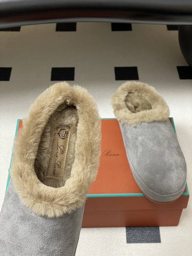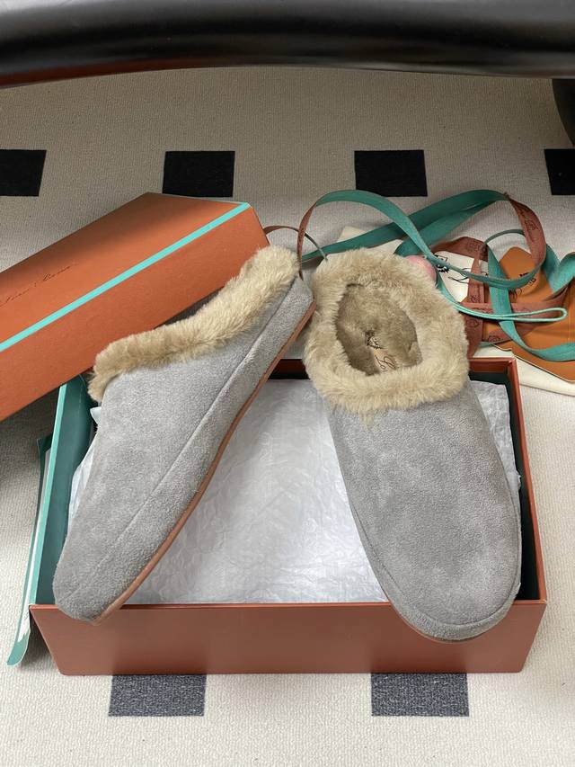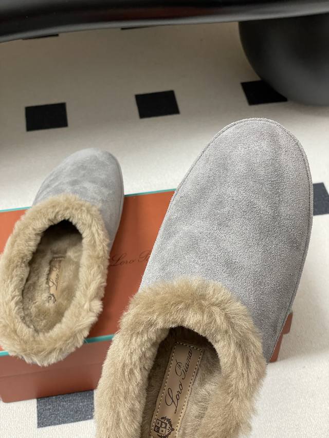 男+10 Loro piana 诺悠翩雅 Lp60S秋冬新款 Tomori Sabot情侣款穆勒鞋老钱风绒面复古包头羊毛半拖鞋舒适勃肯鞋厚底懒人毛毛拖鞋 这款鞋